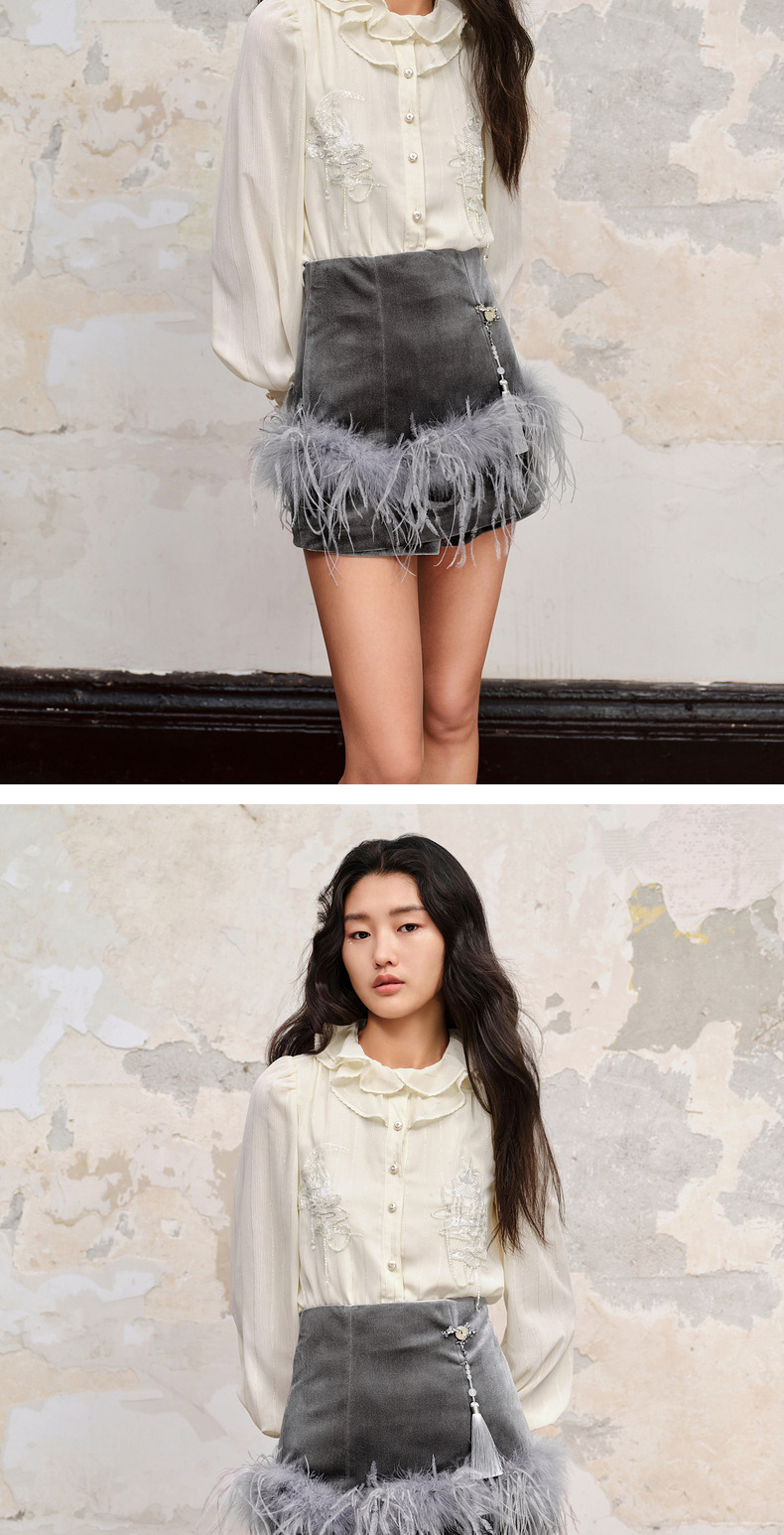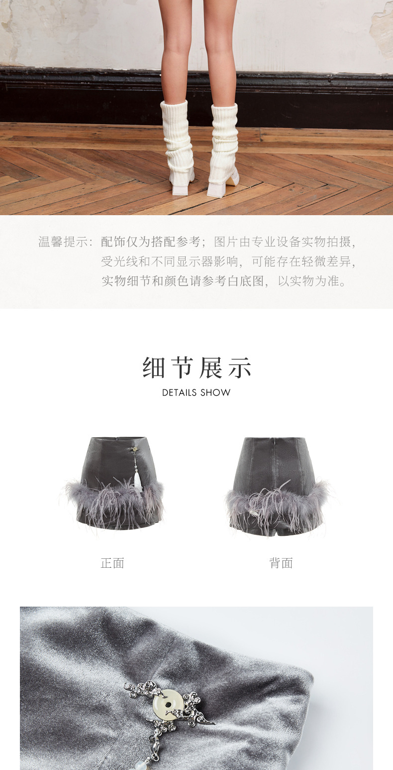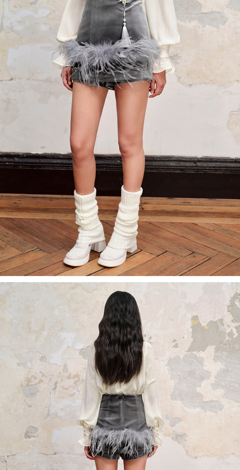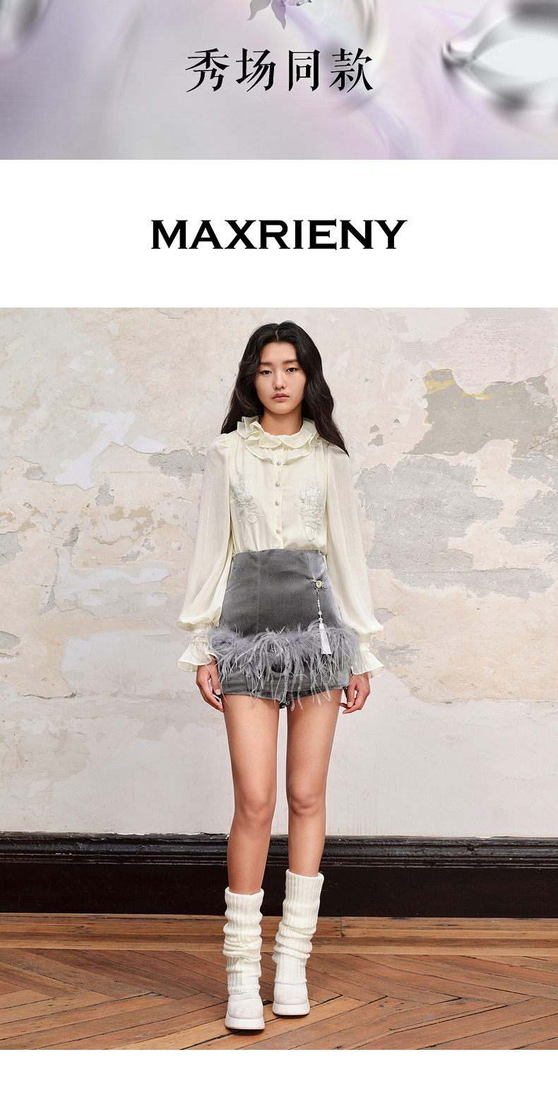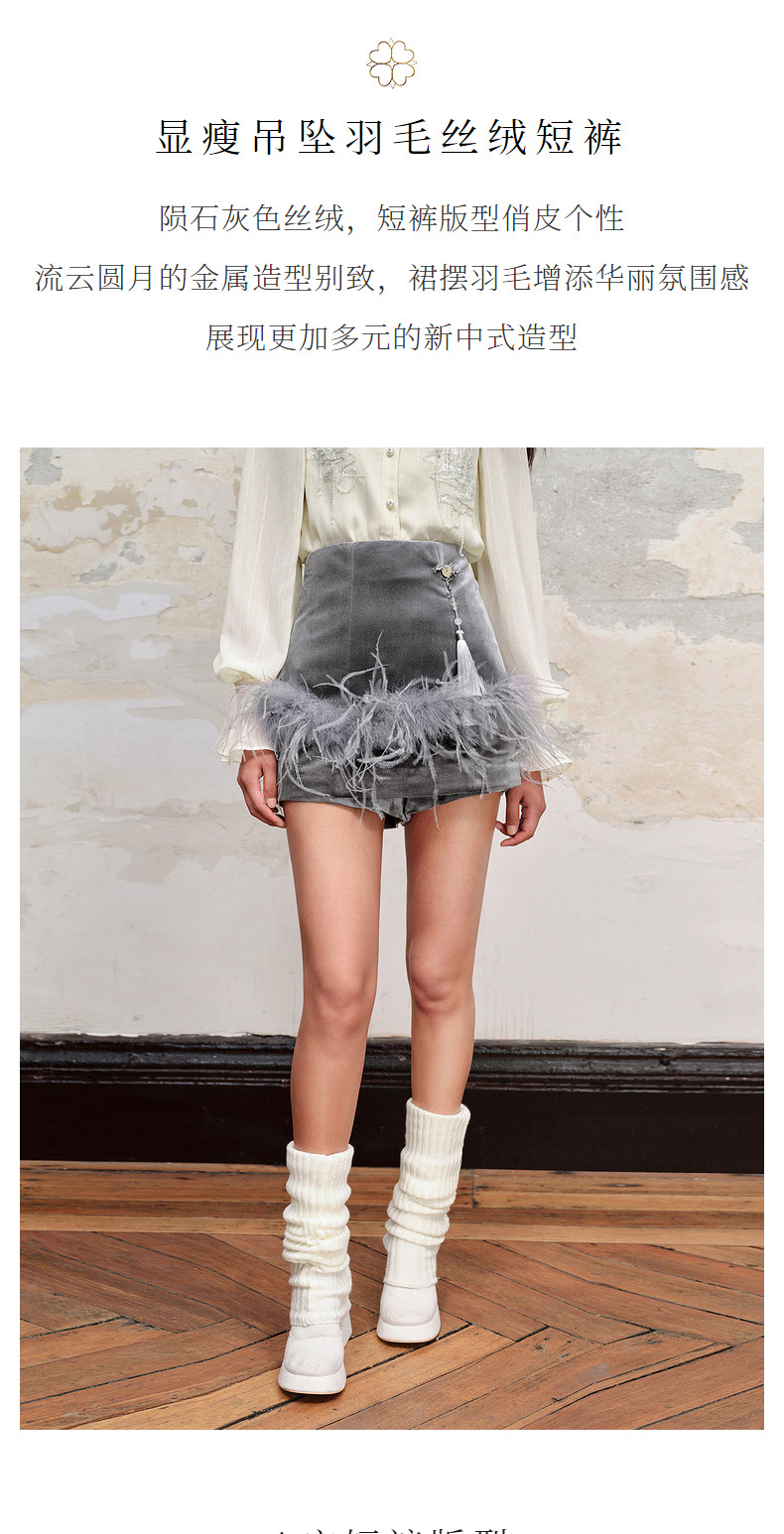 【商场同款】MAXRIENY精致新中式丝绒短裤显瘦裤裙格雷系穿搭(货号:MC88PA540)
