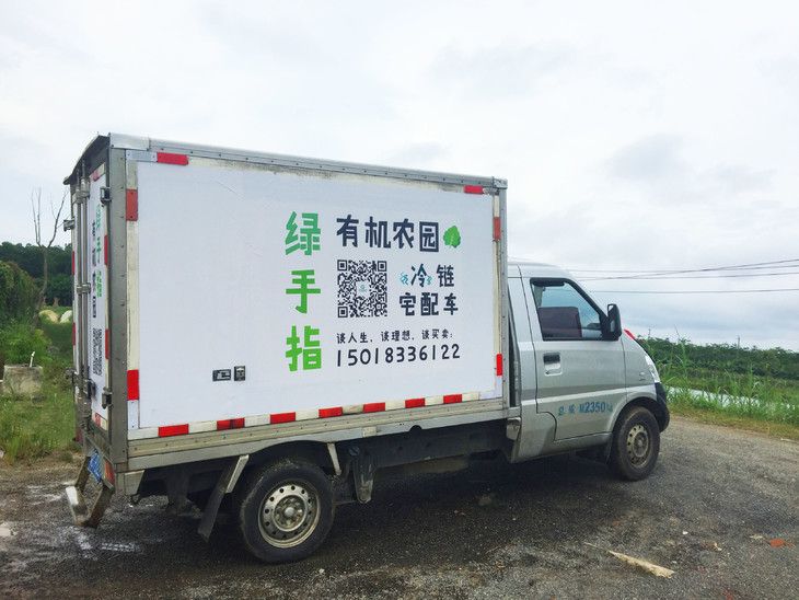 市内绿手指自有物流配送,15元/次,逢周三、周日配送。
