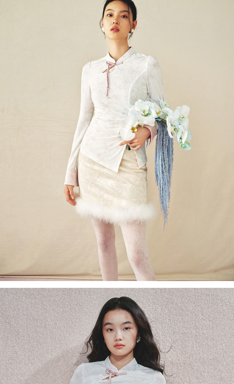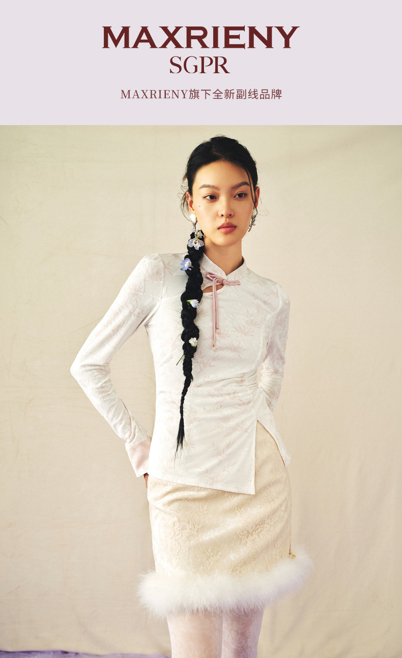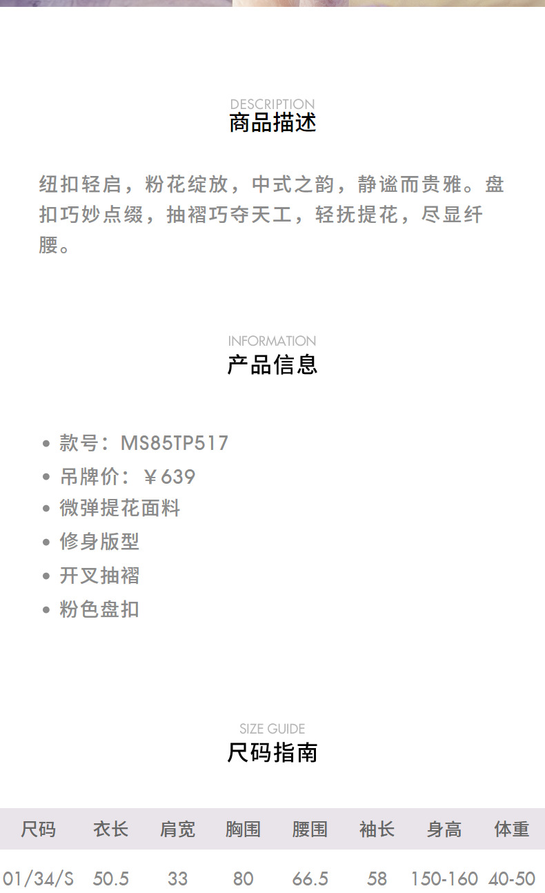 [东方新摩登]MAXRIENY雅贵新中式上衣女修身显瘦开叉抽褶盘扣设计(货号:MS85TP517)