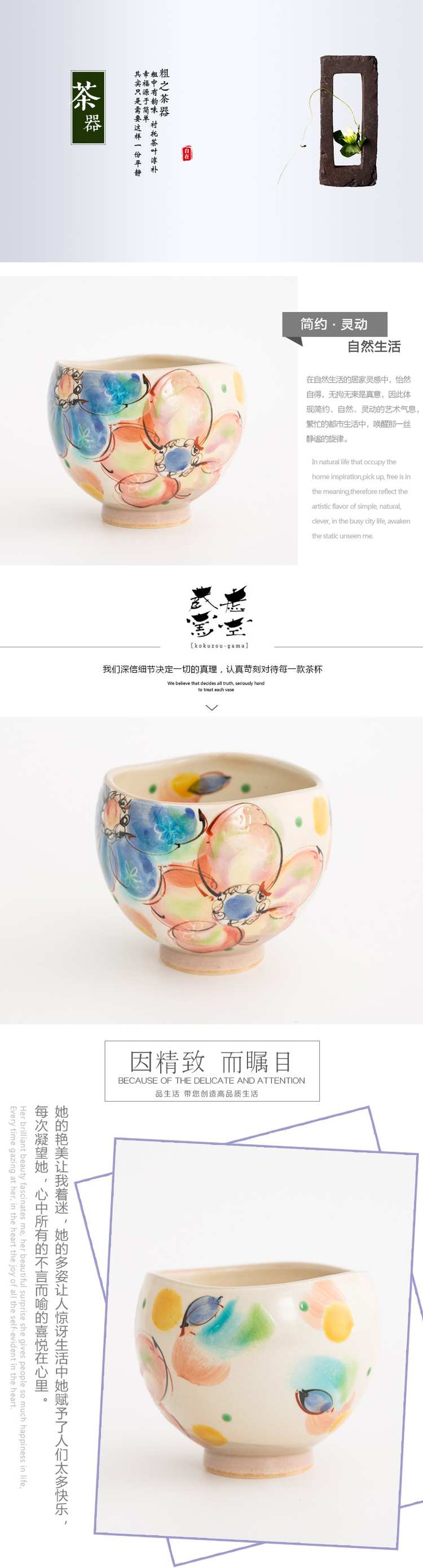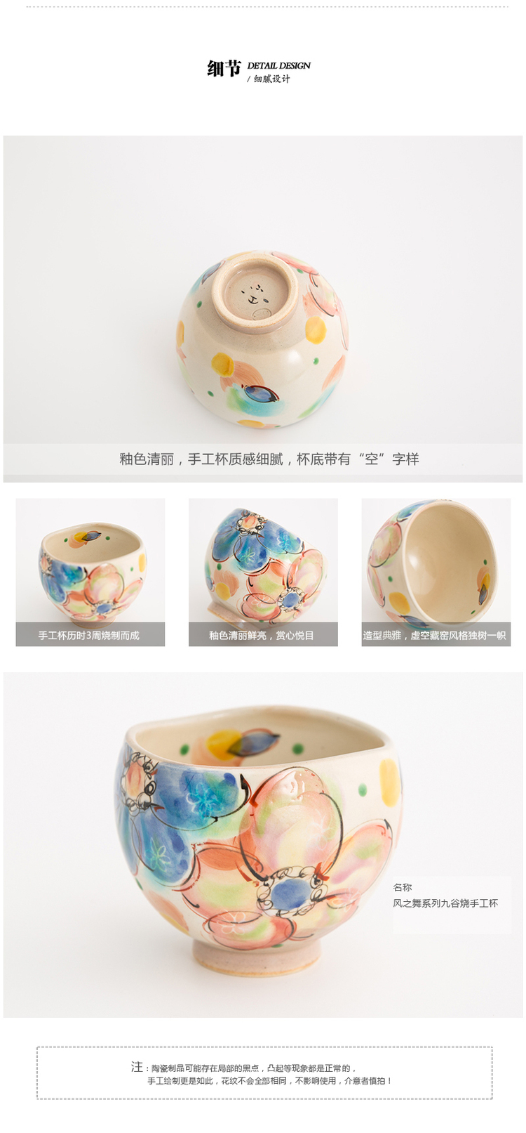 【虚空藏窑】日本原产风之舞语系列九谷烧手工杯茶杯