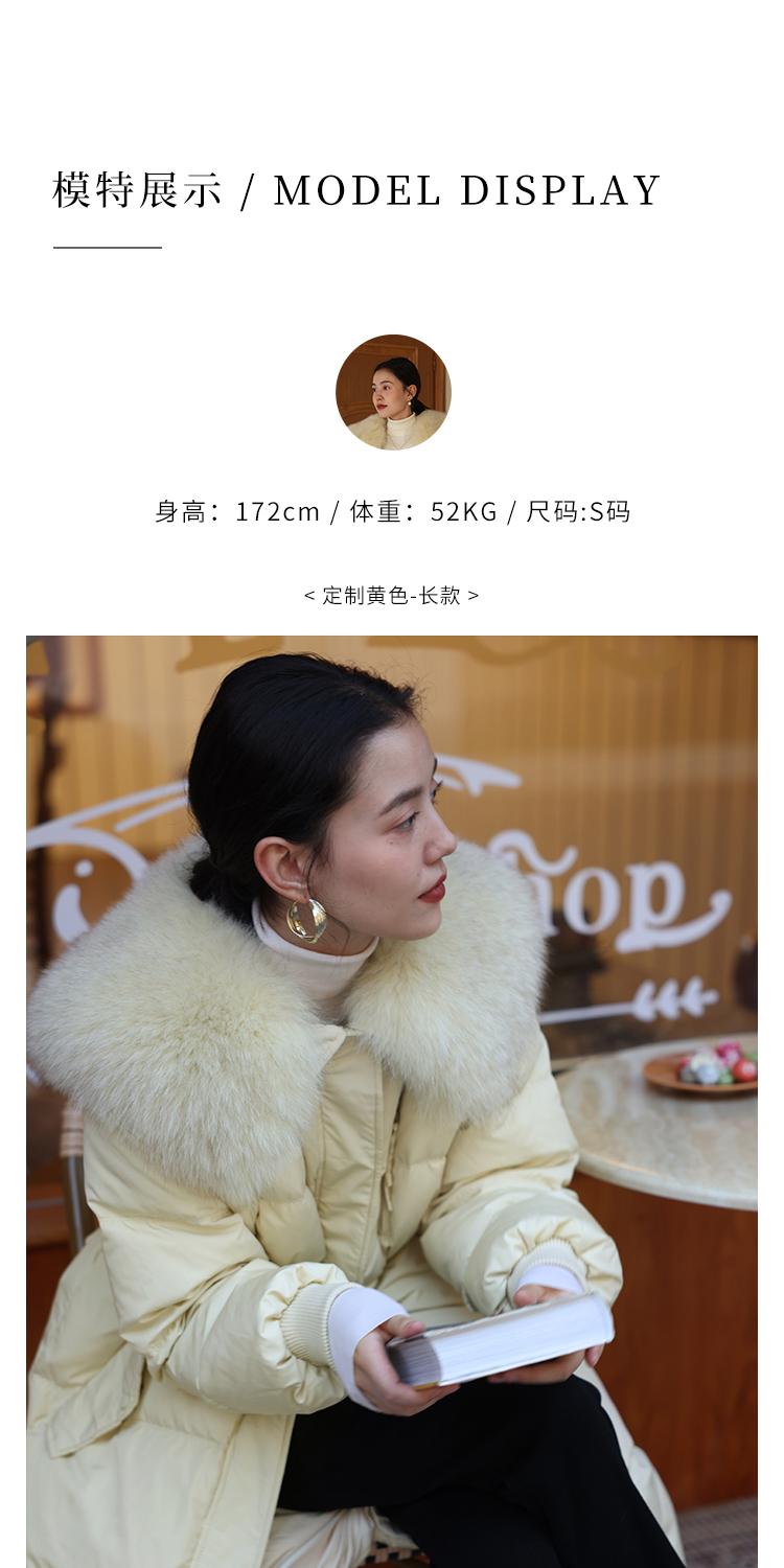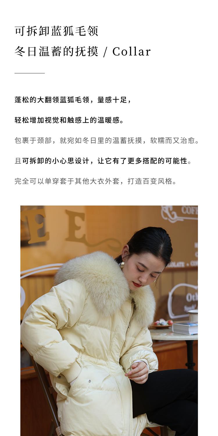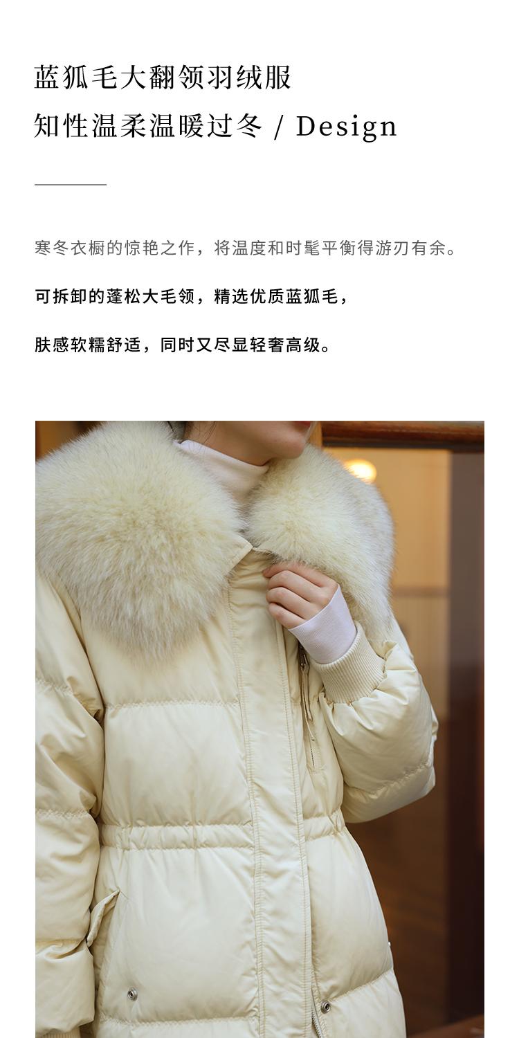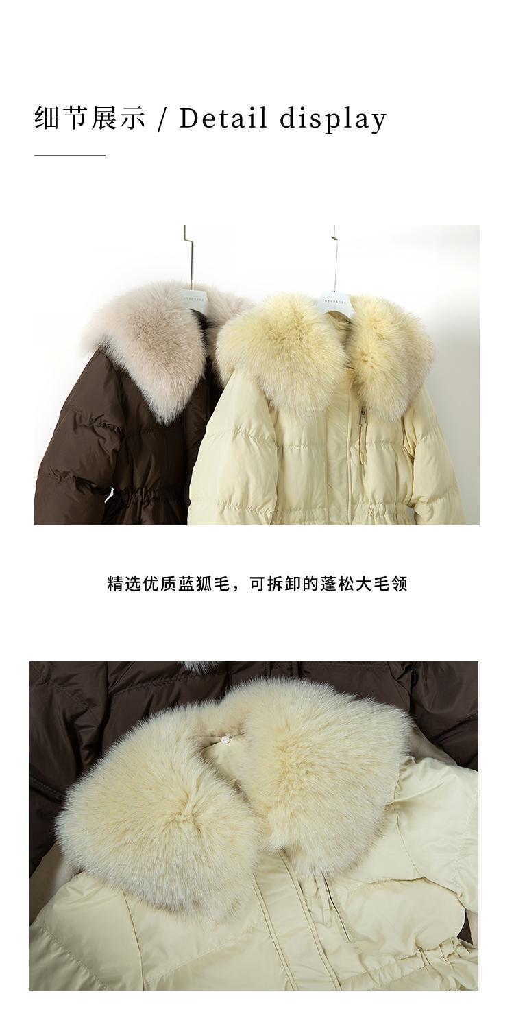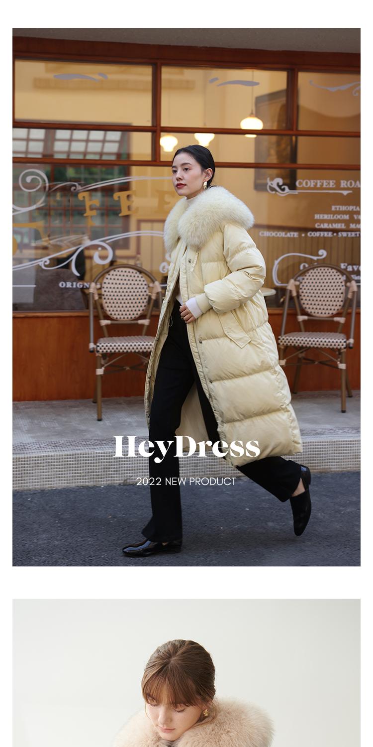 HeyDress蓝狐毛大翻领羽绒服女冬季90白鸭绒保暖宽松收腰外套
