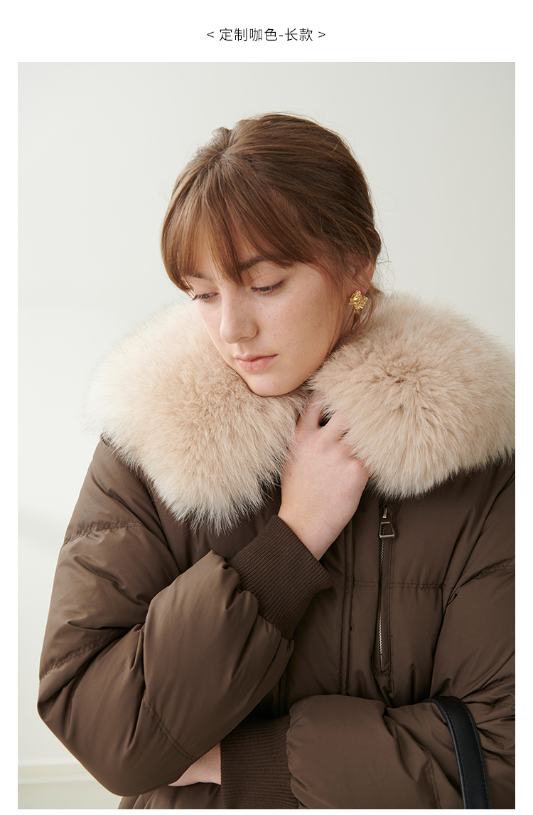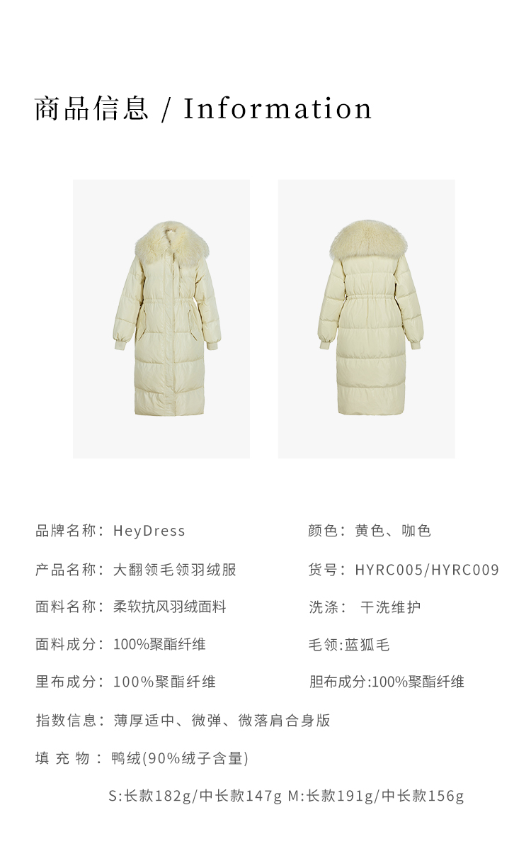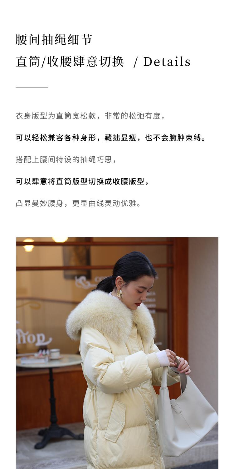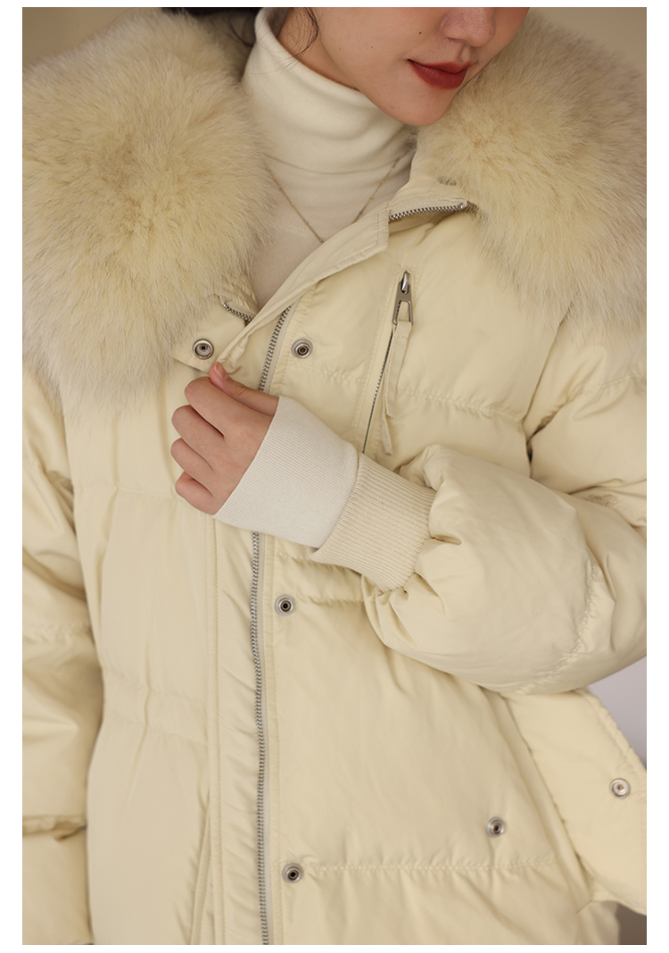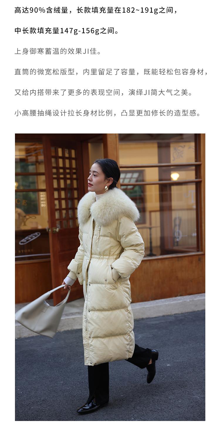 HeyDress蓝狐毛大翻领羽绒服女冬季90白鸭绒保暖宽松收腰外套