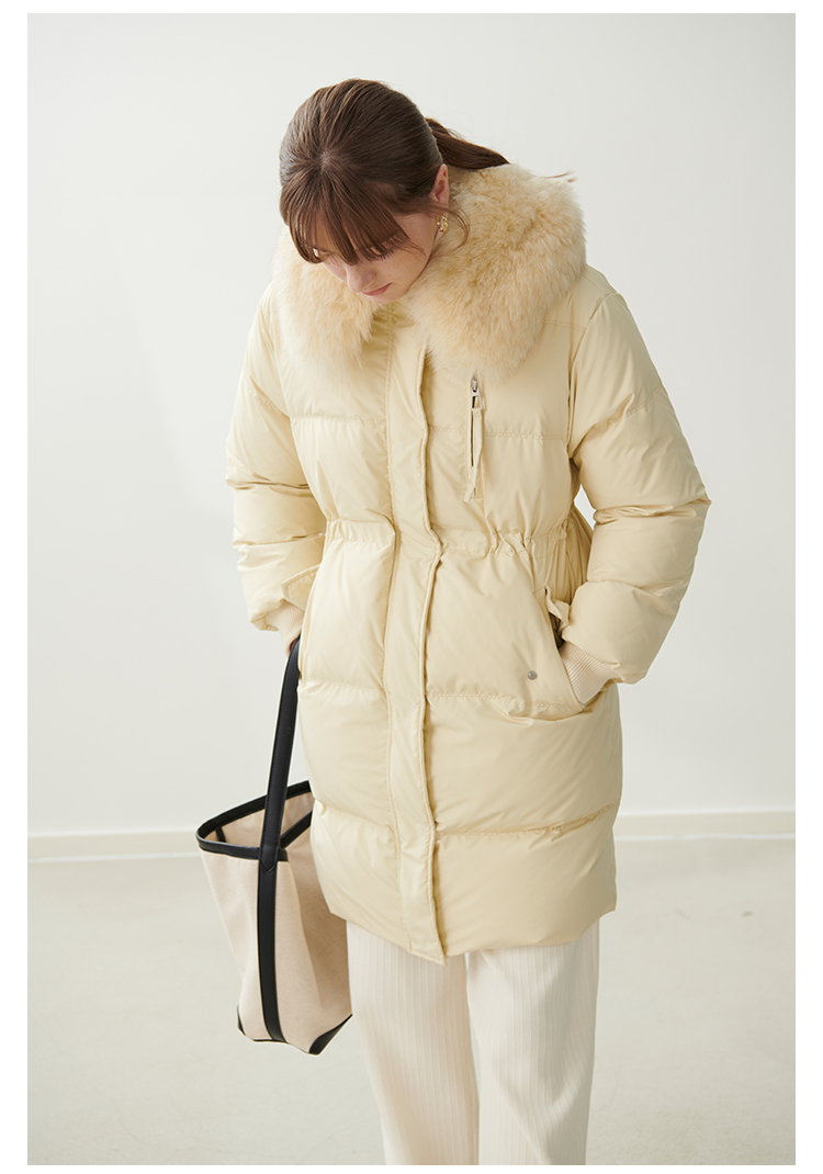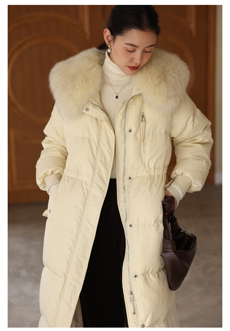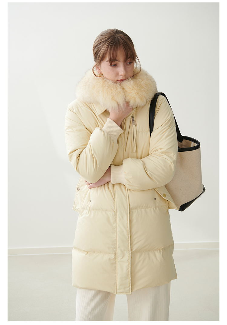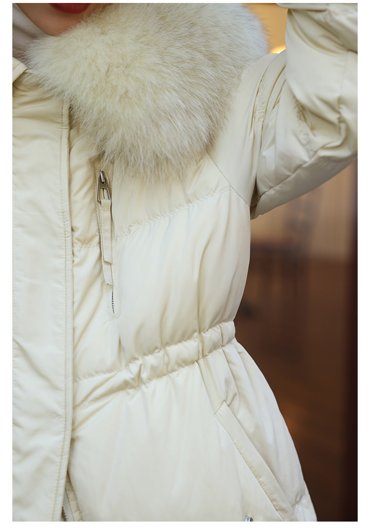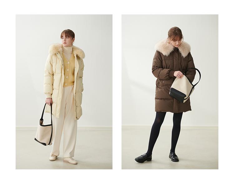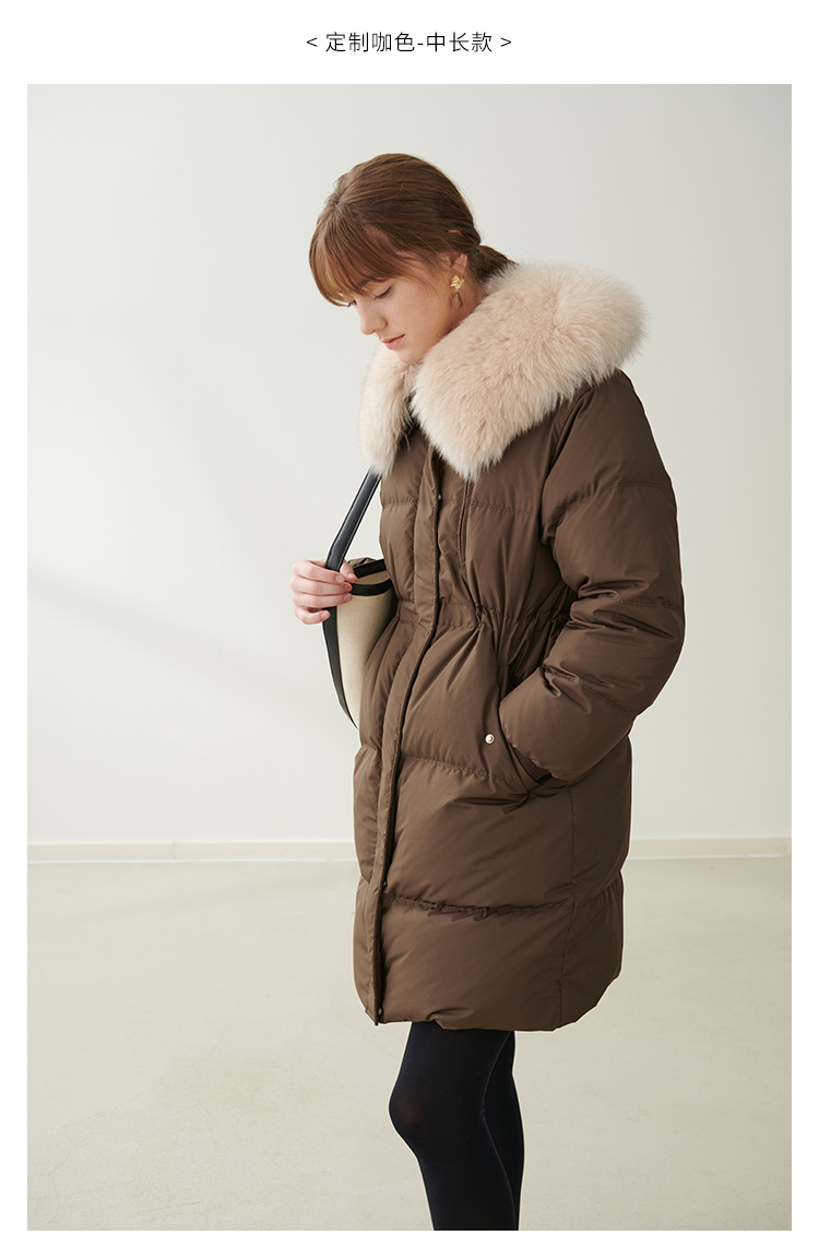 HeyDress蓝狐毛大翻领羽绒服女冬季90白鸭绒保暖宽松收腰外套