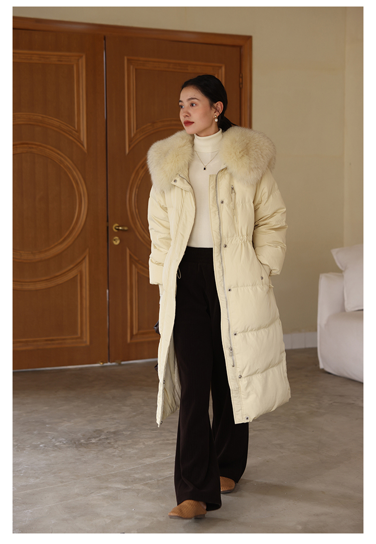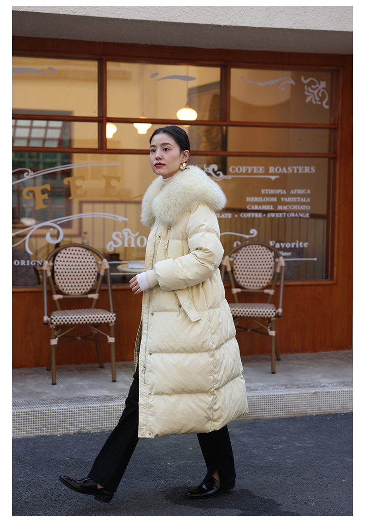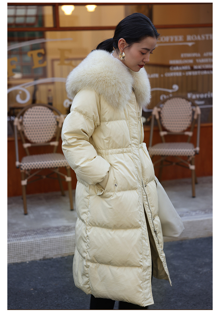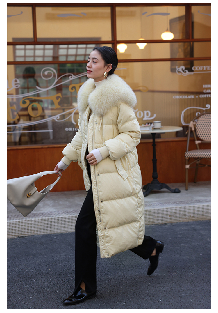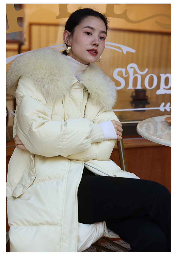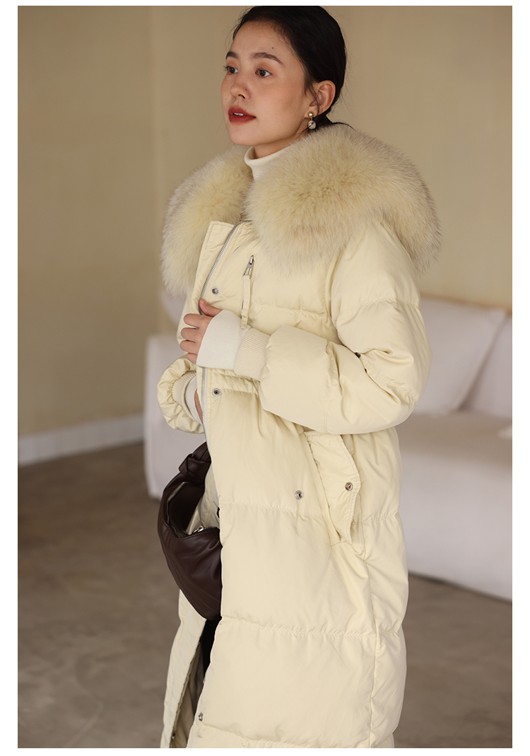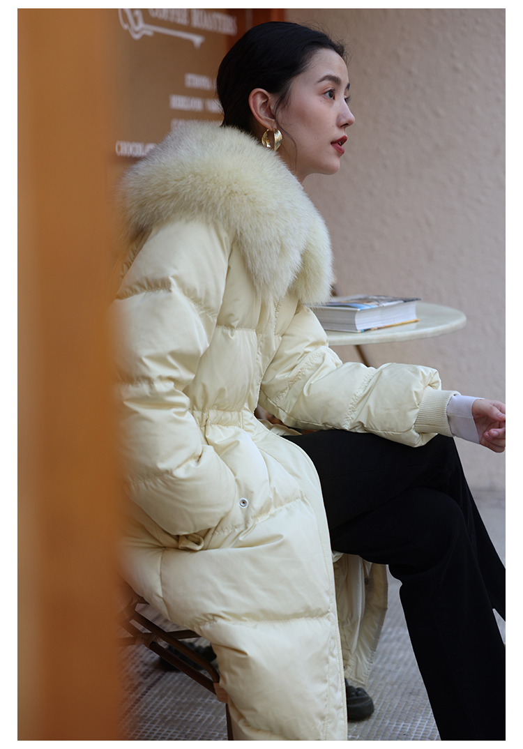 HeyDress蓝狐毛大翻领羽绒服女冬季90白鸭绒保暖宽松收腰外套