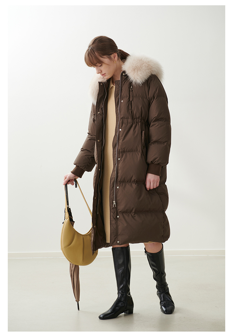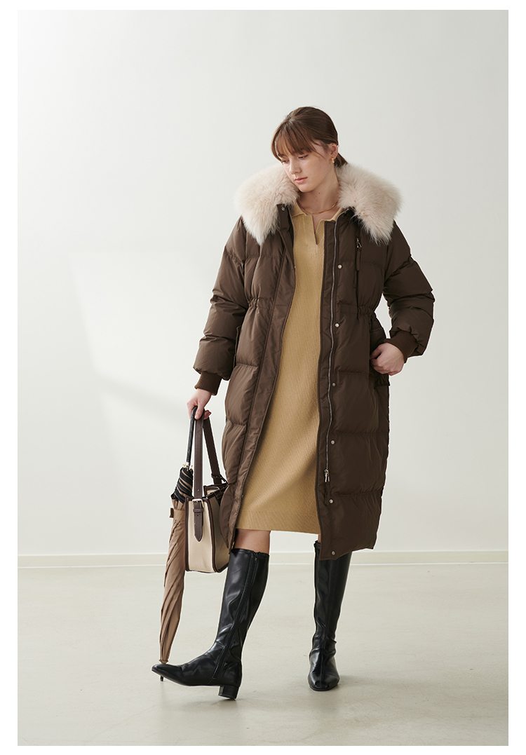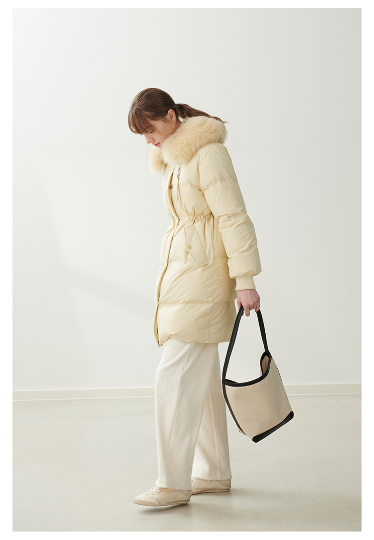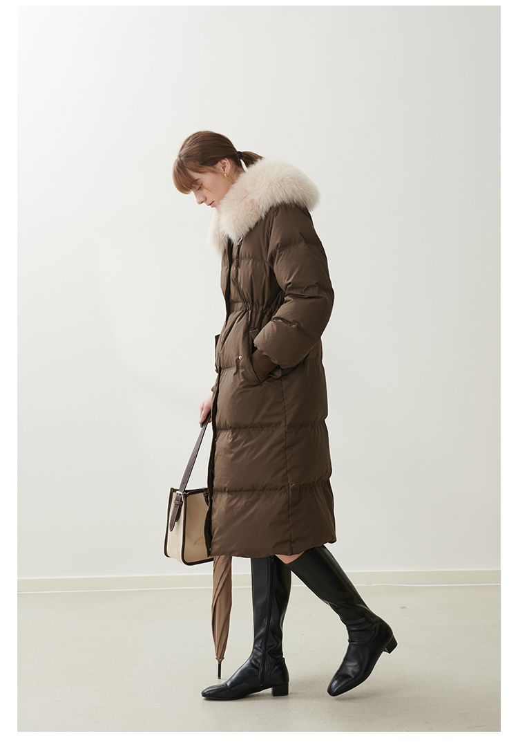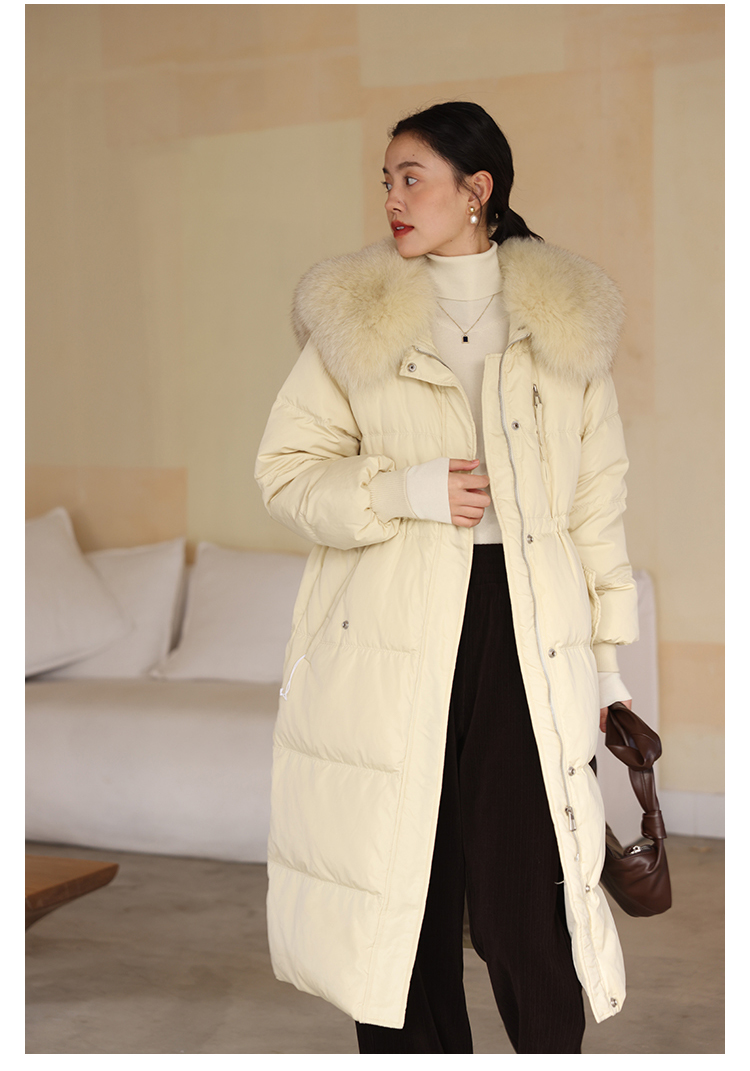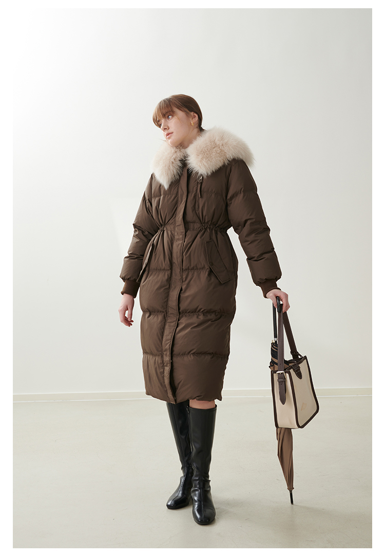 HeyDress蓝狐毛大翻领羽绒服女冬季90白鸭绒保暖宽松收腰外套
