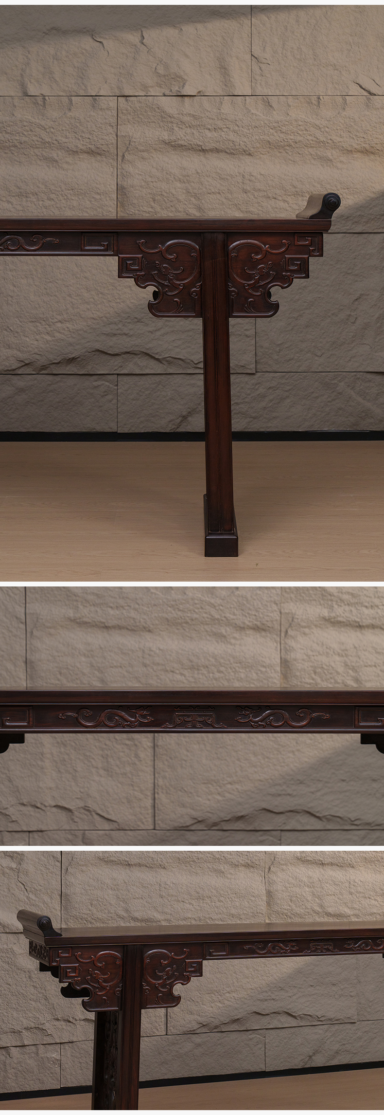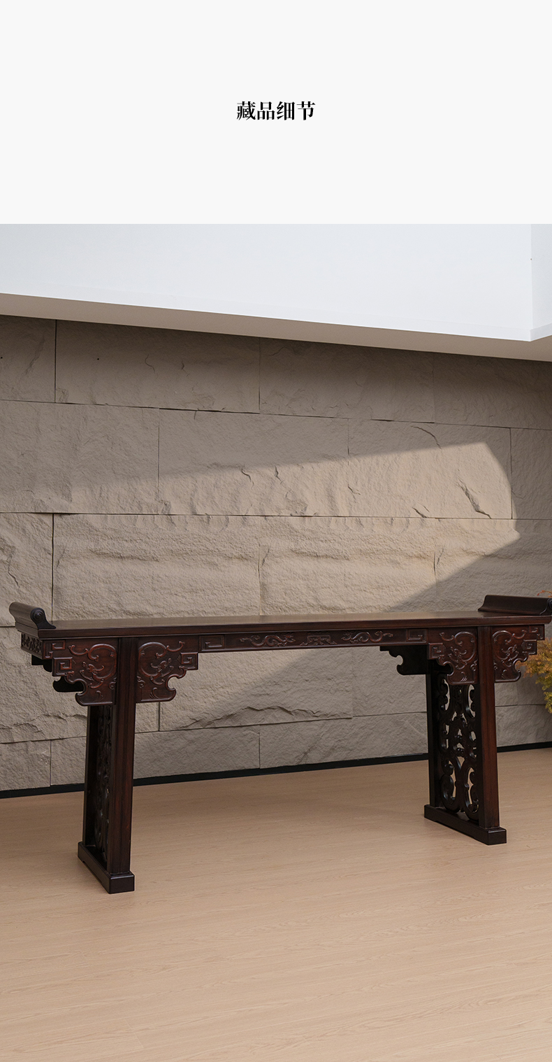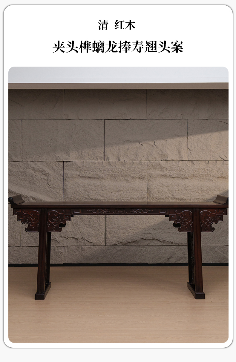 清 红木夹头榫螭龙捧寿翘头案