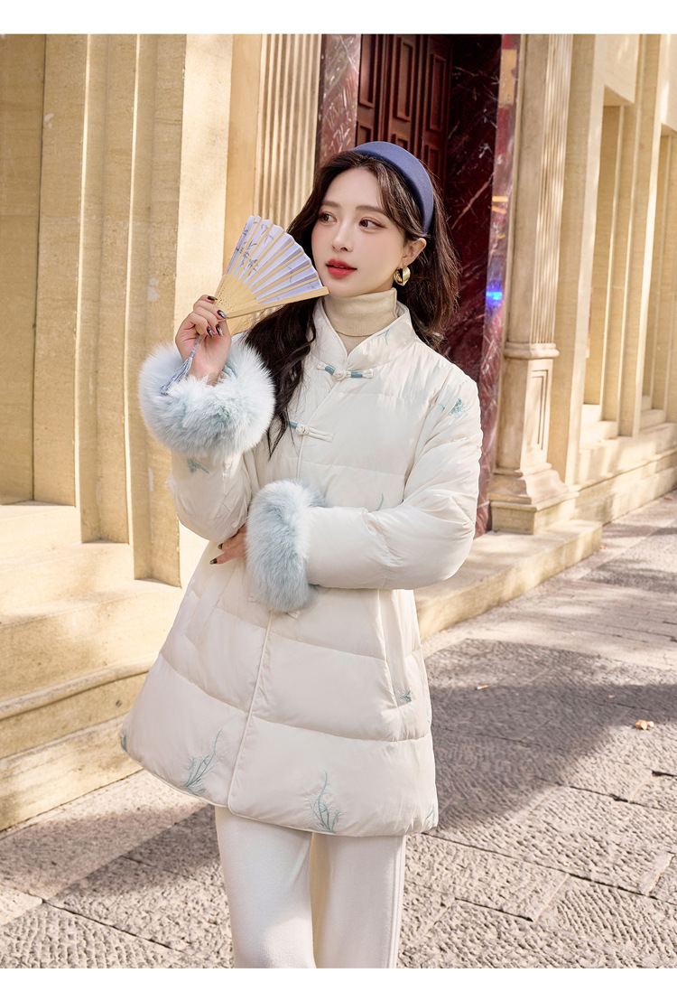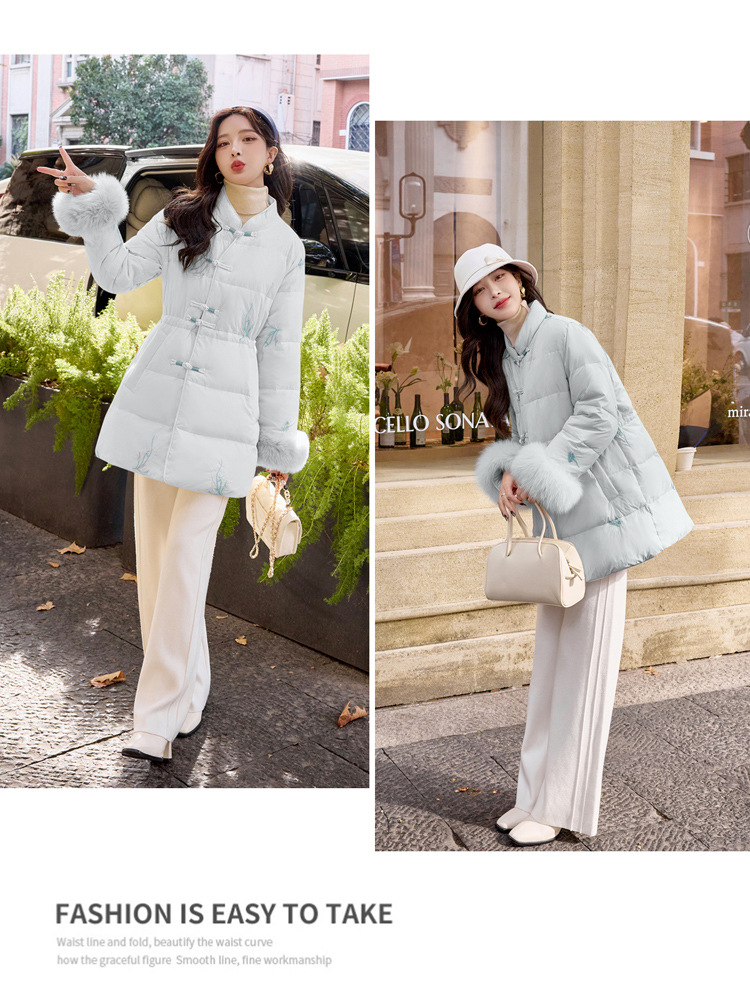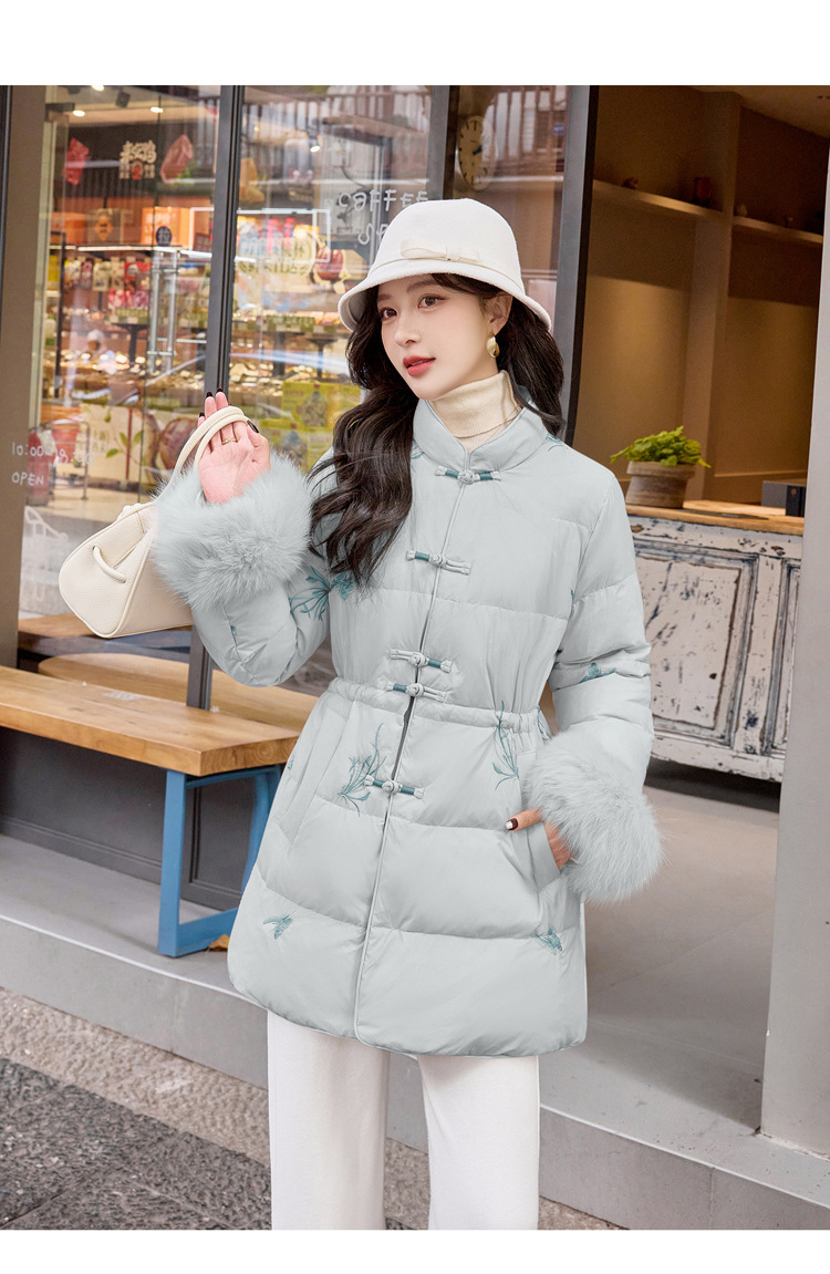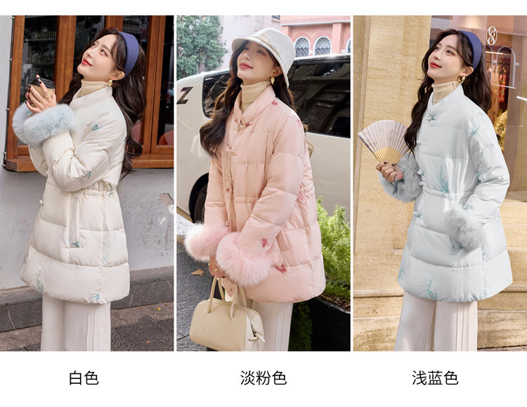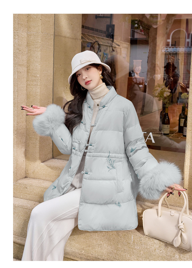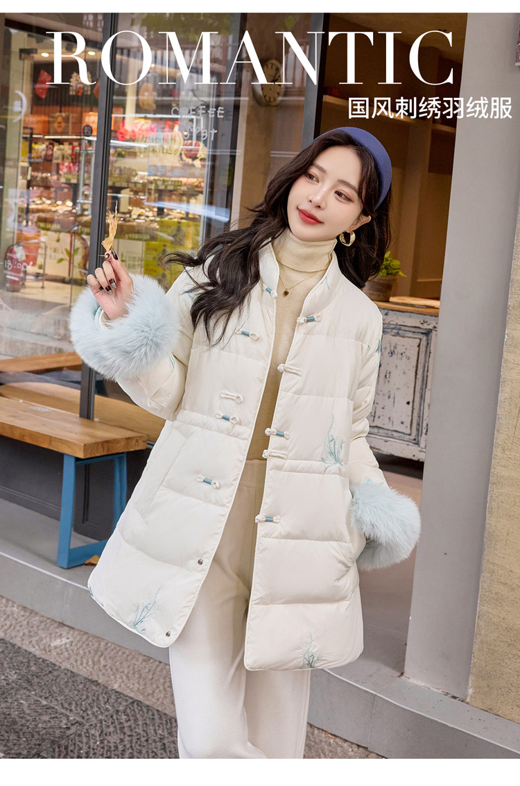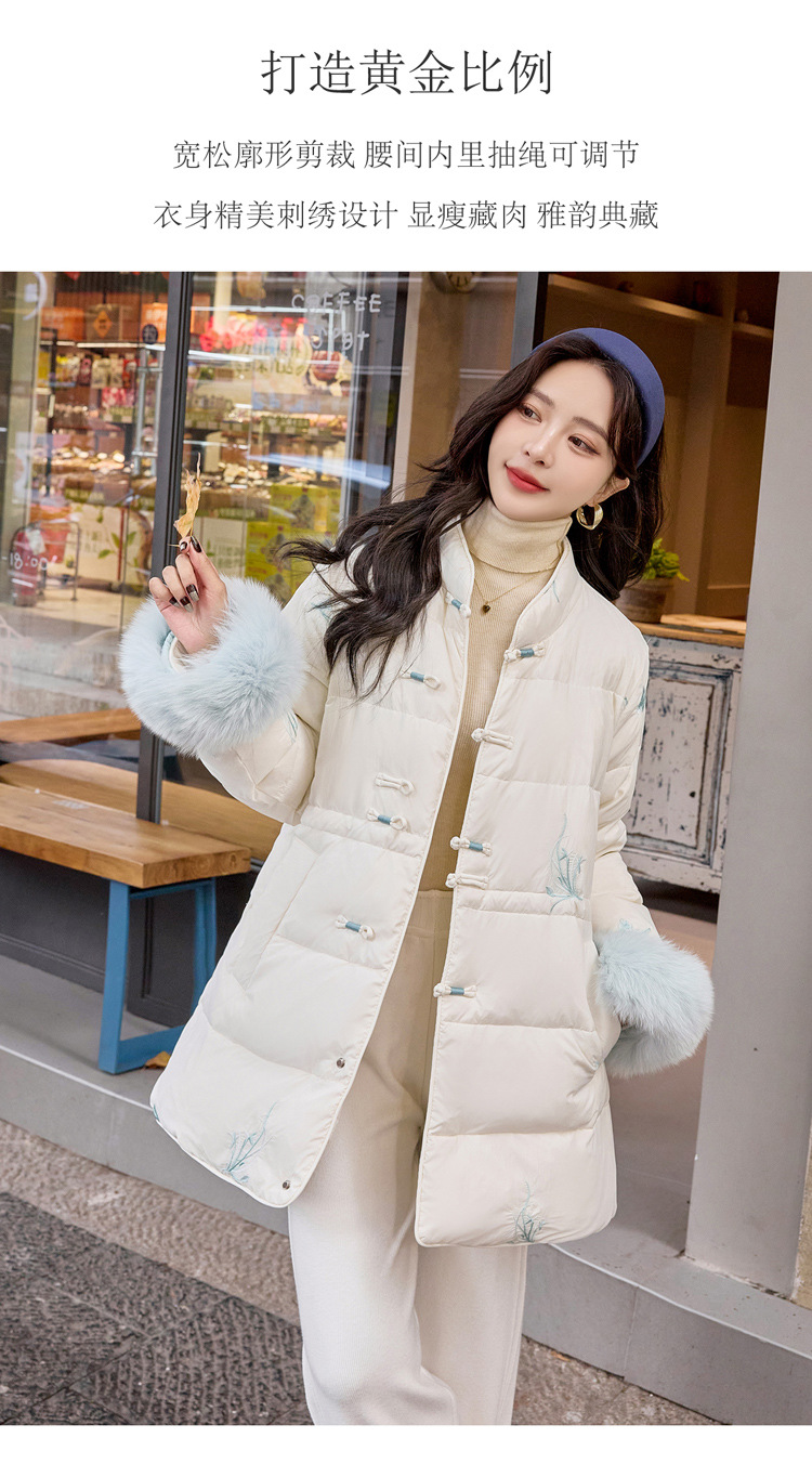 HJY2577522025年冬季新款90白鸭绒狐狸毛中长款中式国风刺绣收腰显瘦羽绒服 商品图3