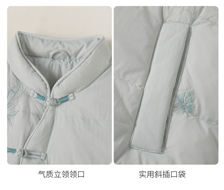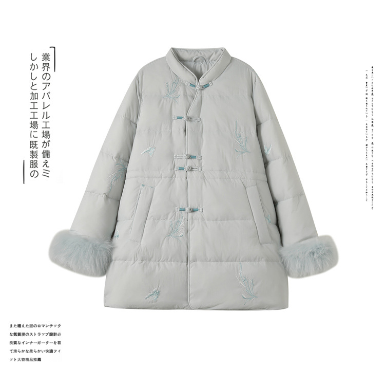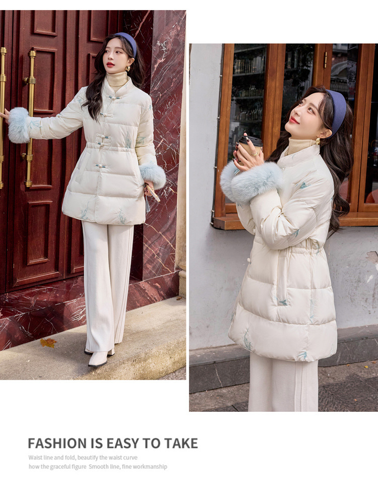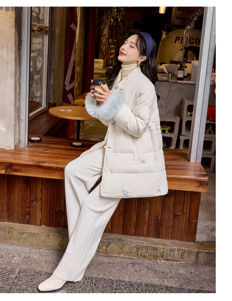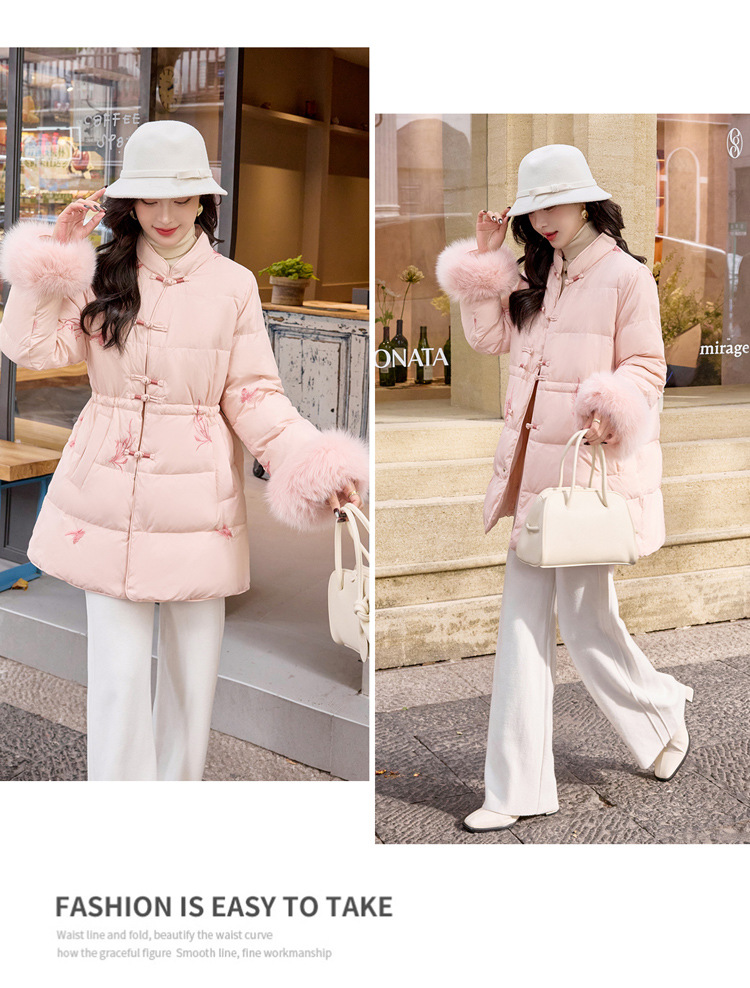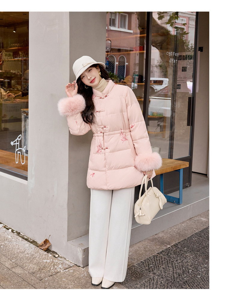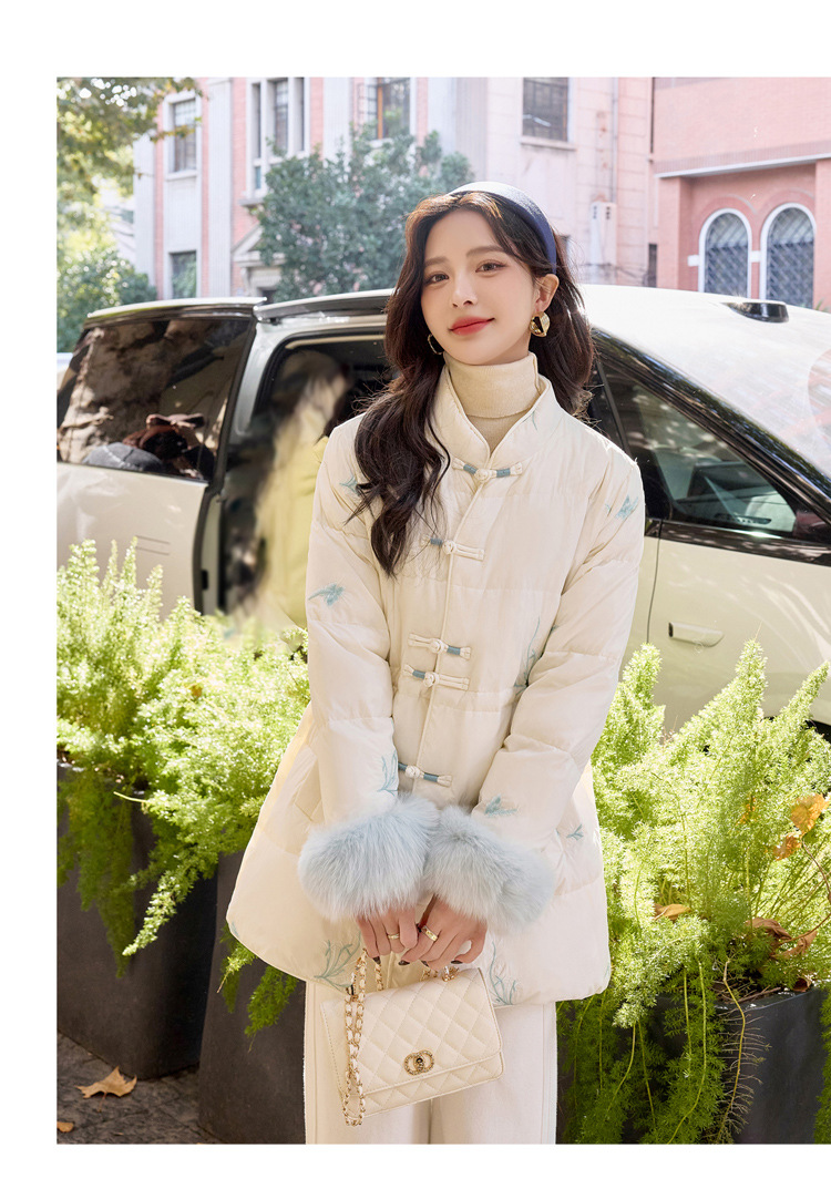 HJY2577522025年冬季新款90白鸭绒狐狸毛中长款中式国风刺绣收腰显瘦羽绒服 商品图3