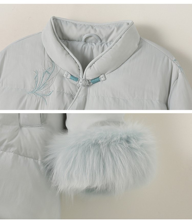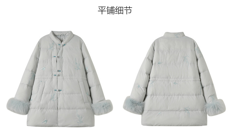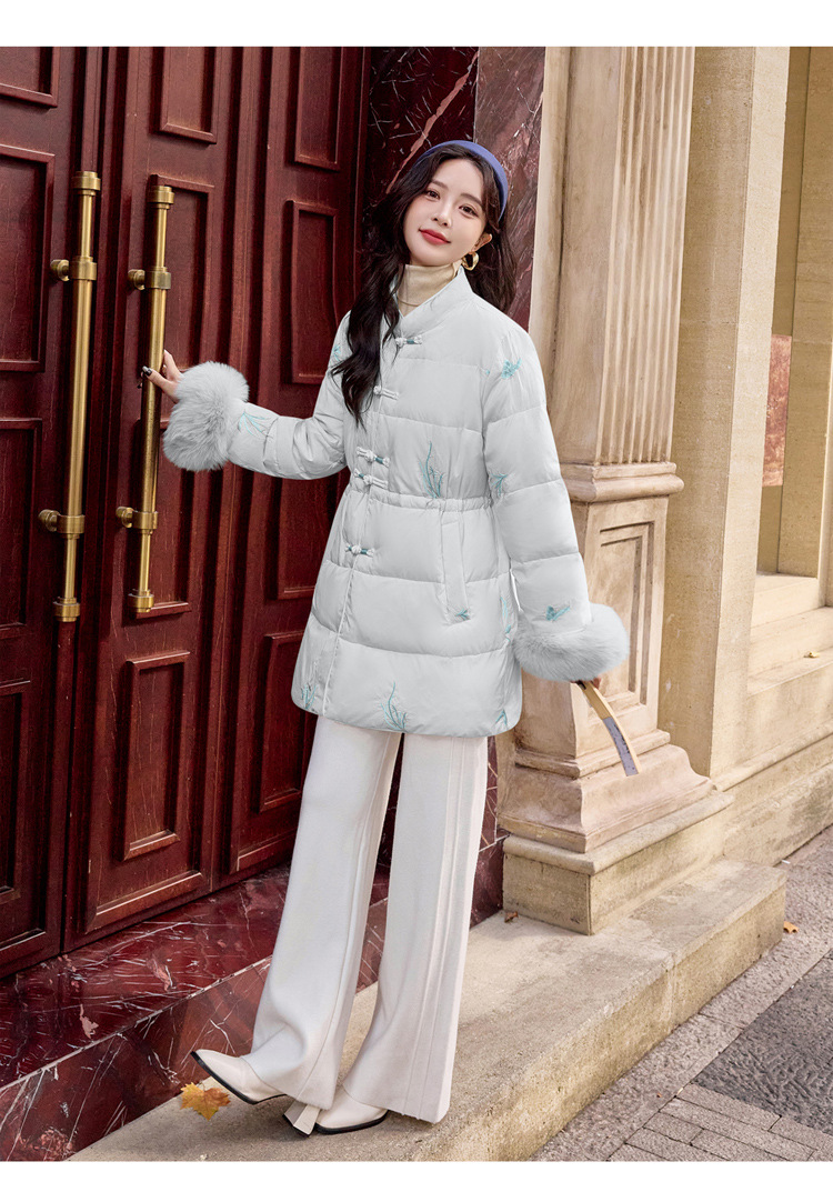 HJY2577522025年冬季新款90白鸭绒狐狸毛中长款中式国风刺绣收腰显瘦羽绒服 商品图4