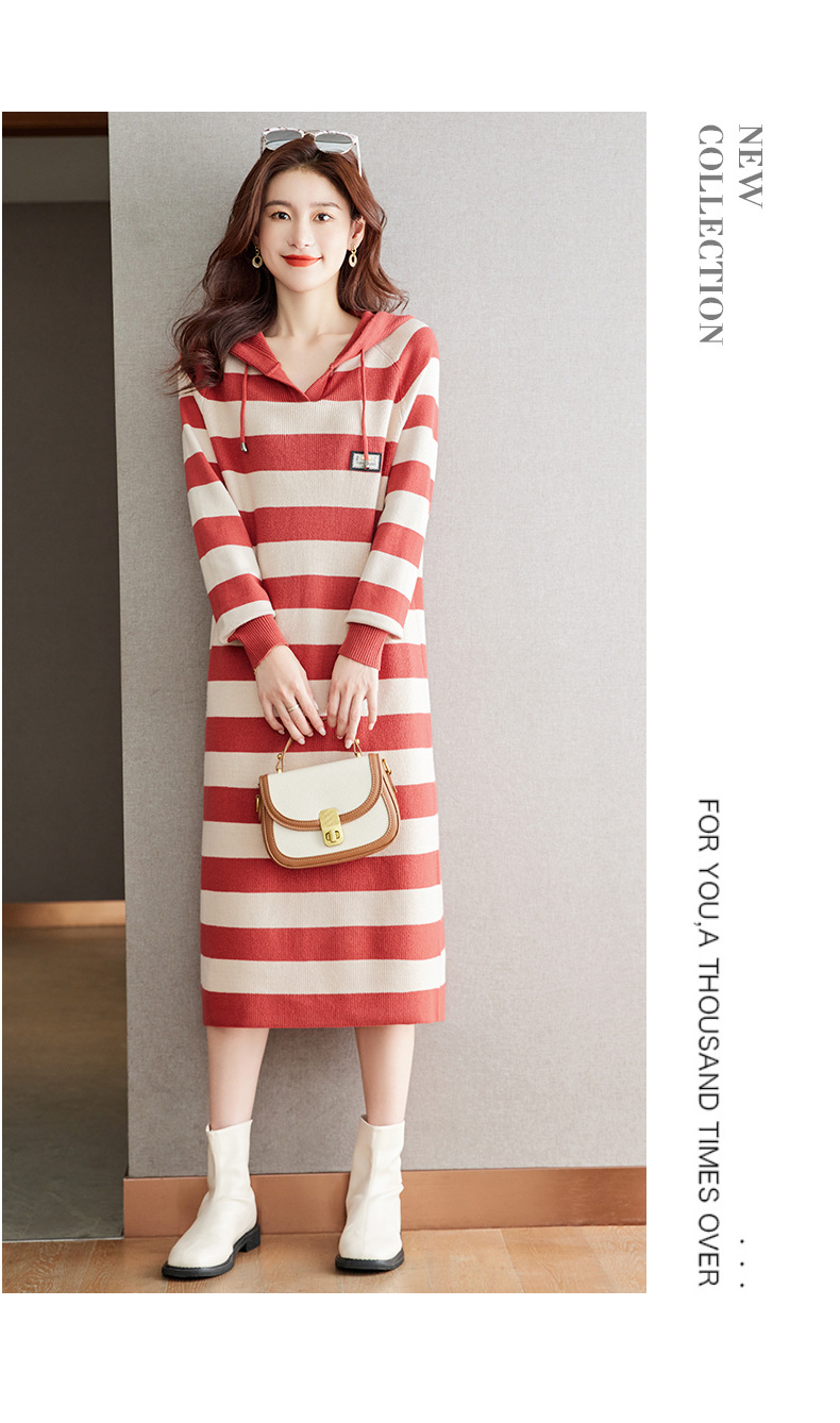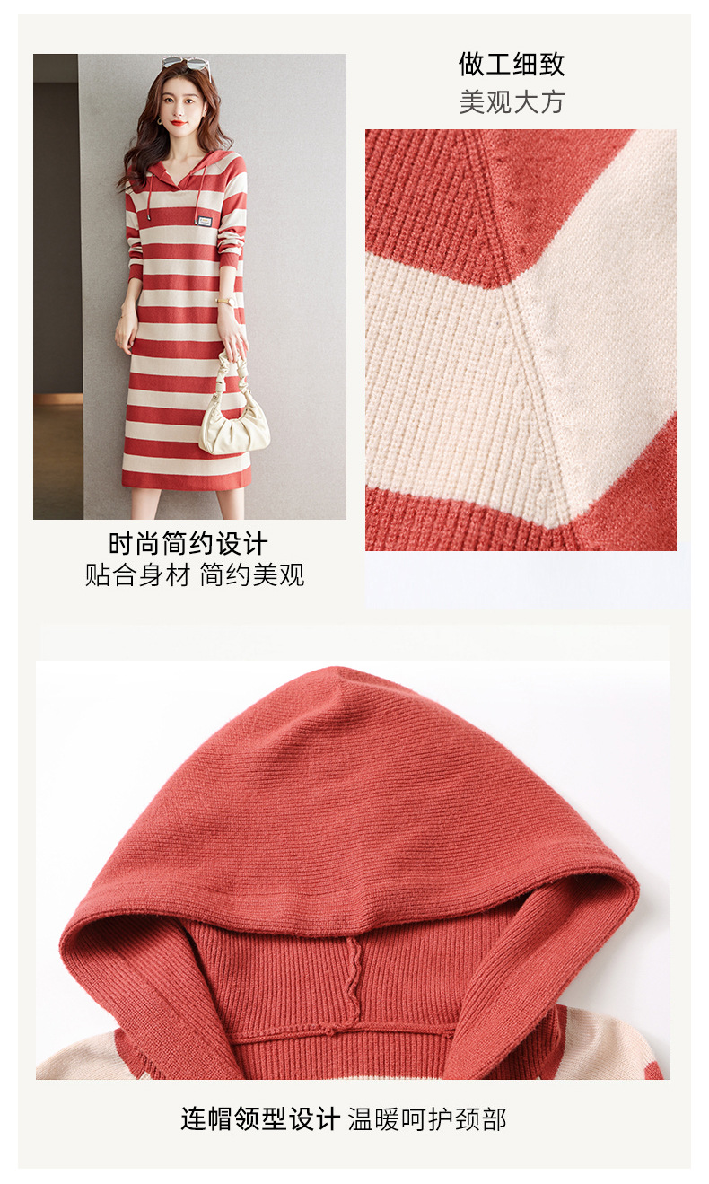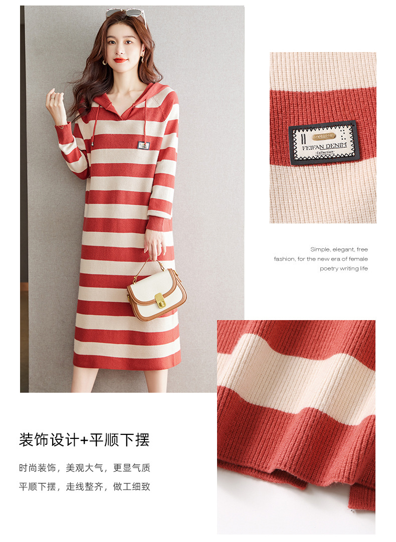 丁摩 连帽条纹针织卫衣连衣裙打底裙025-8213