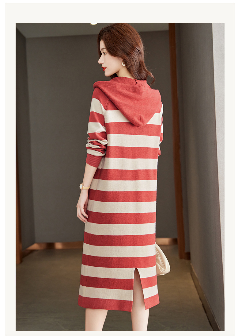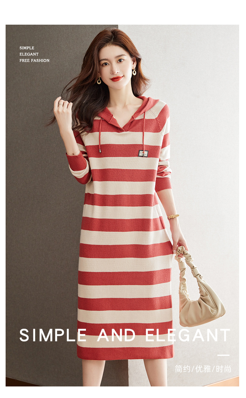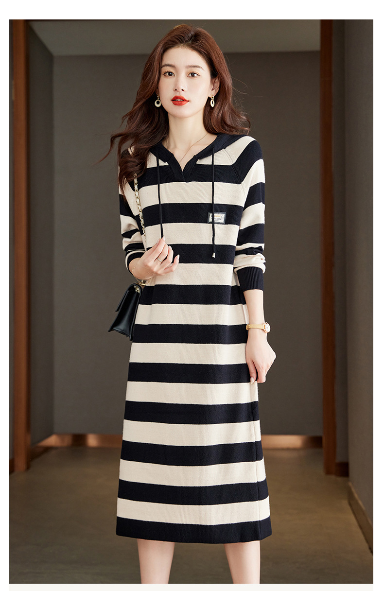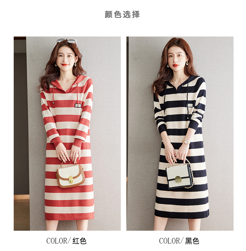 丁摩 连帽条纹针织卫衣连衣裙打底裙025-8213