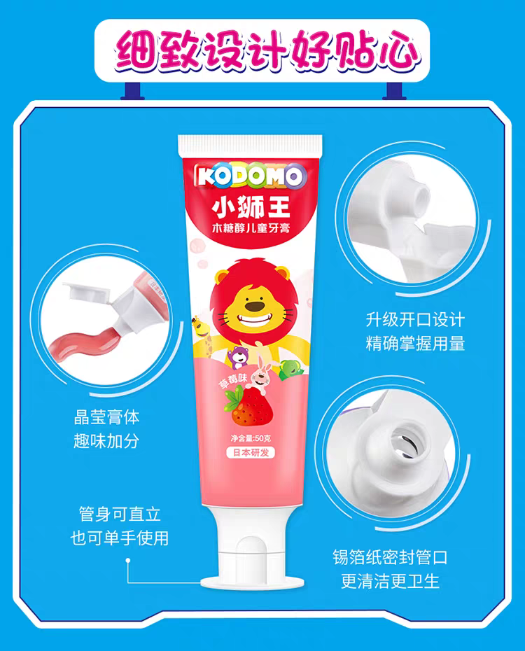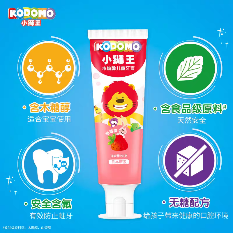 小狮王木糖醇儿童牙膏(葡萄,草莓多味可选)50克(第2件半价下单后退补))