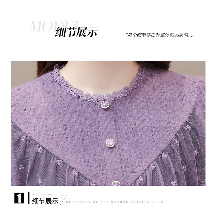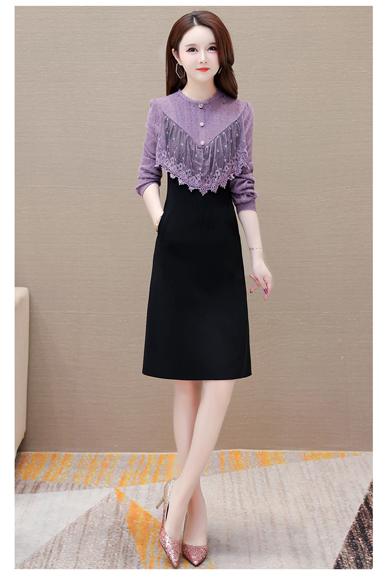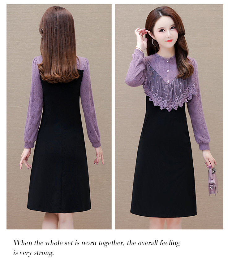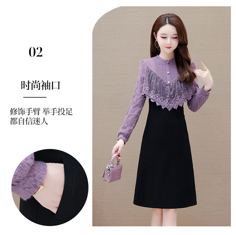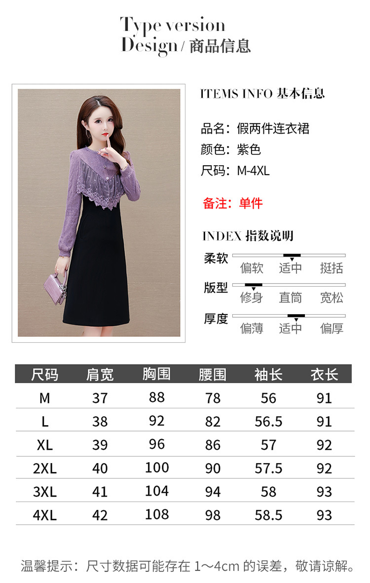 洋气修身,新款圆领长袖A字裙蕾丝拼接中长款假两件时尚连衣裙QYM-XQD-53B72-L