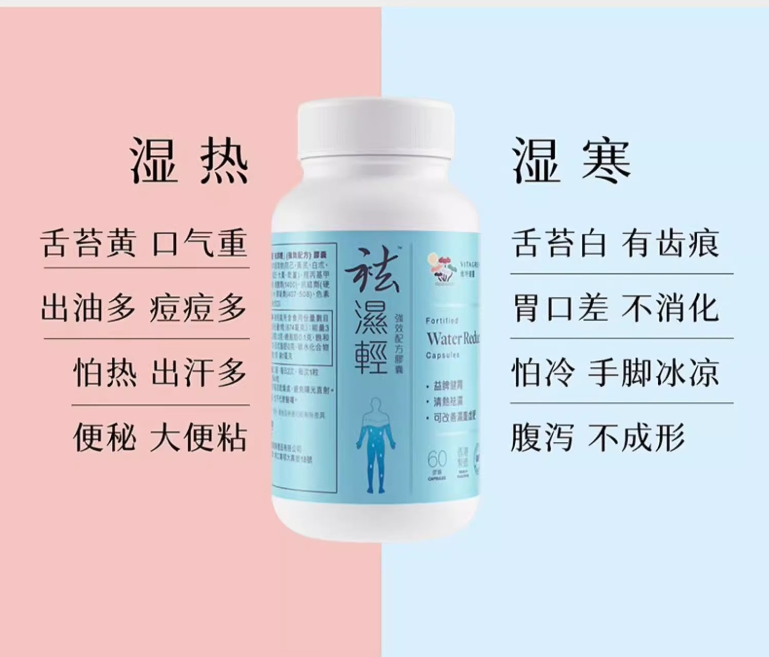 【跨境】香港Vita Green 维特健灵祛濕輕胶囊 草本轻盈 60粒/盒及40粒/盒(多规格)