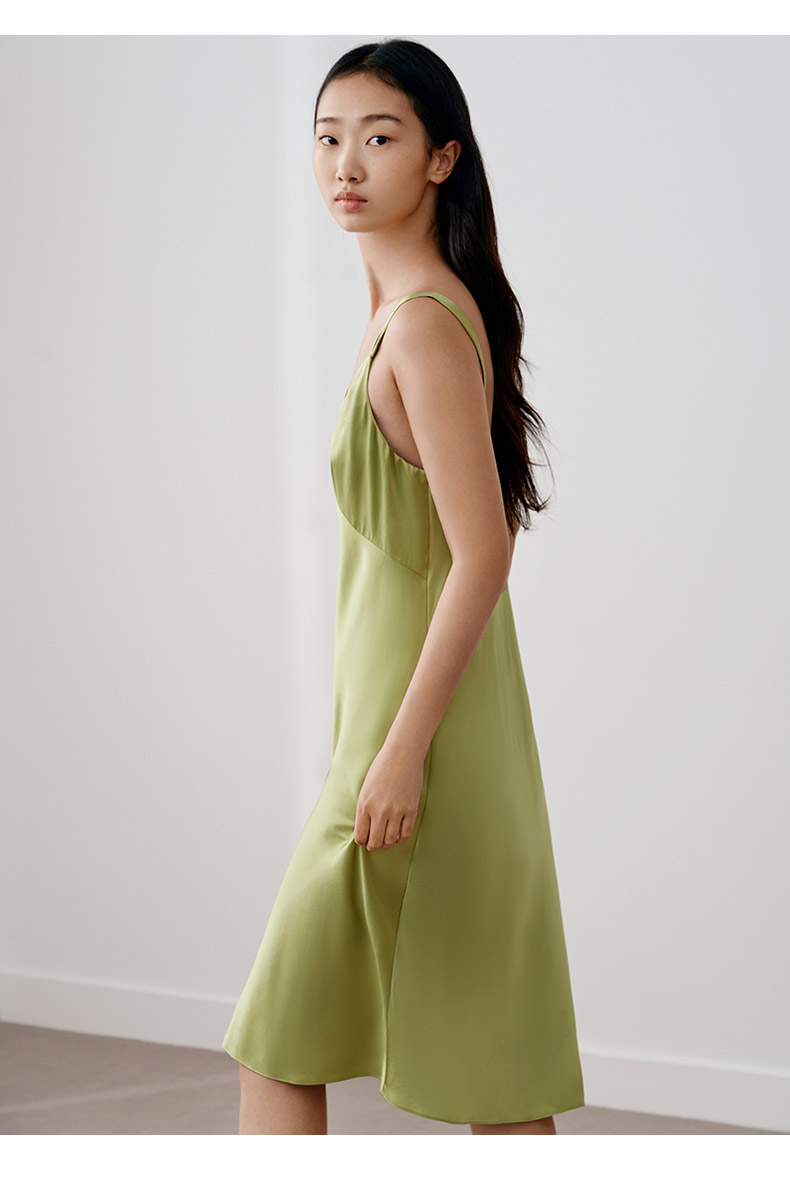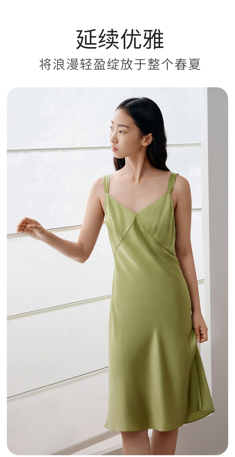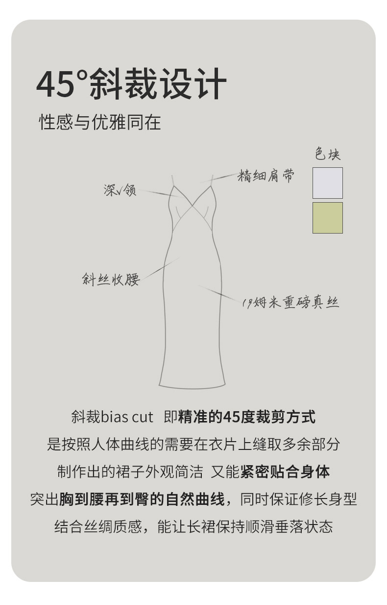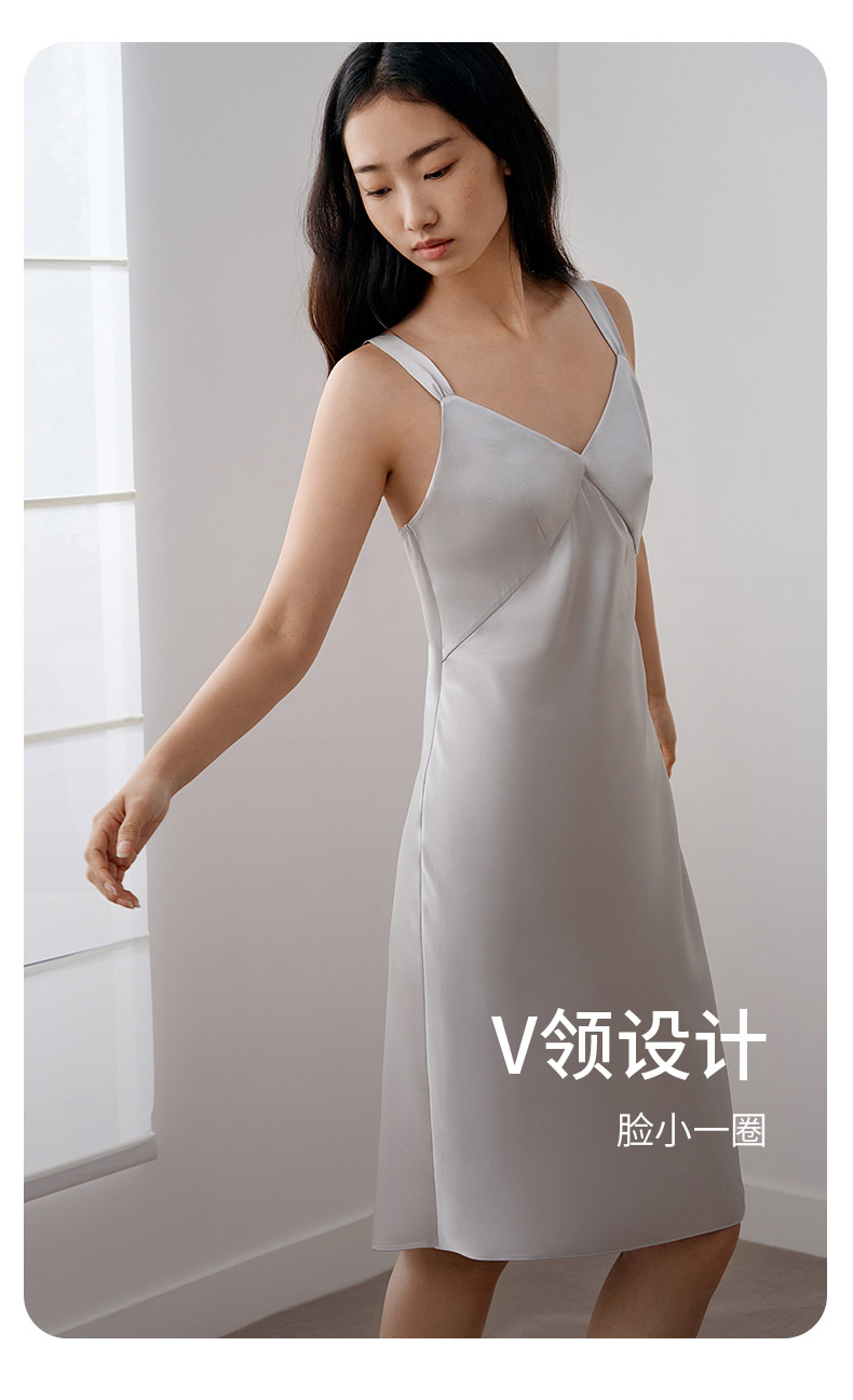 金三塔100%桑蚕丝重磅真丝优雅吊带裙