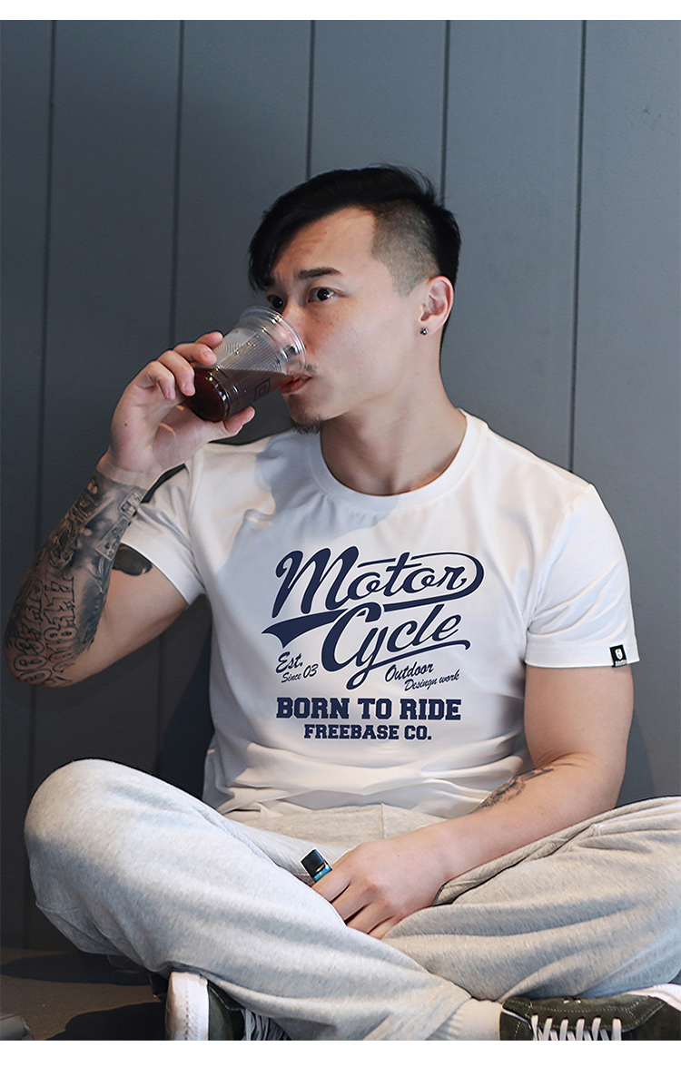 FREEBASE欧美日系复古流行英文字母motorcycle纯棉短袖T恤男夏季 NMT-1828