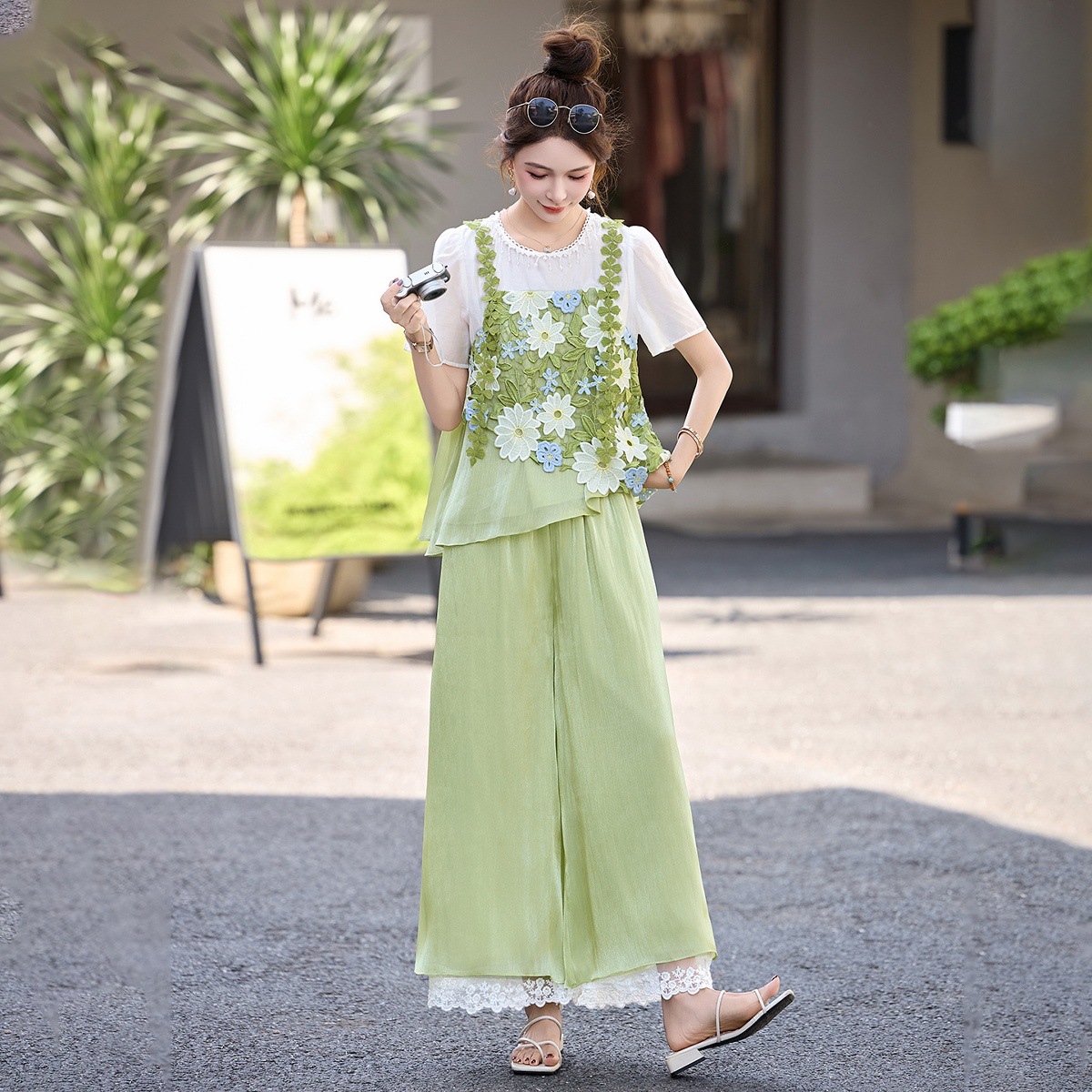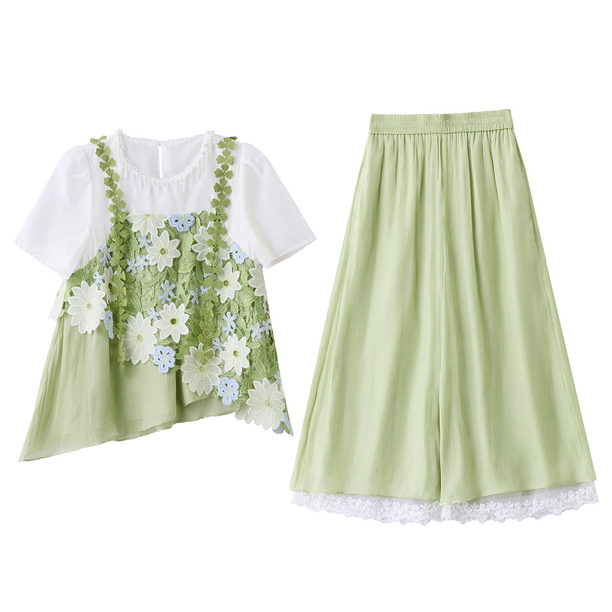 小香风重工刺绣气质名媛,时尚洋气阔腿裤两件套HR-AQHUI8108