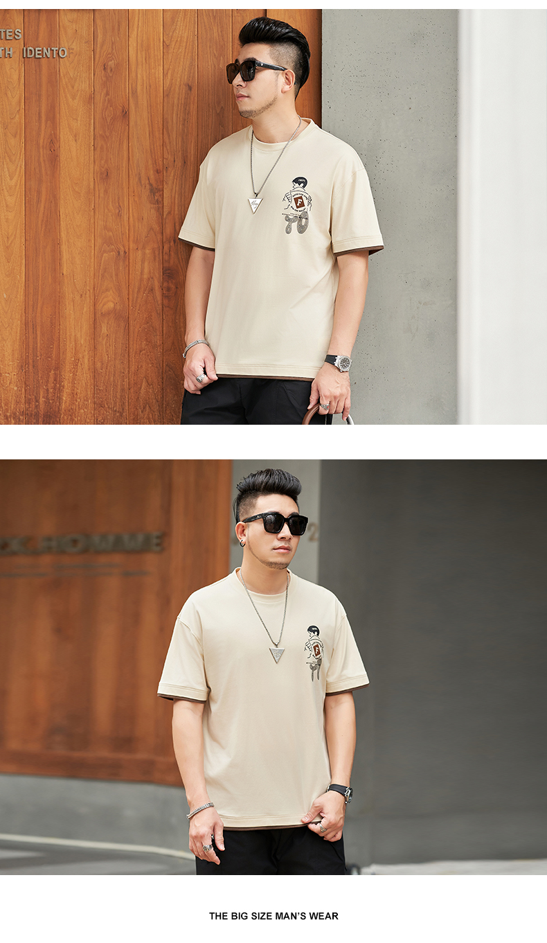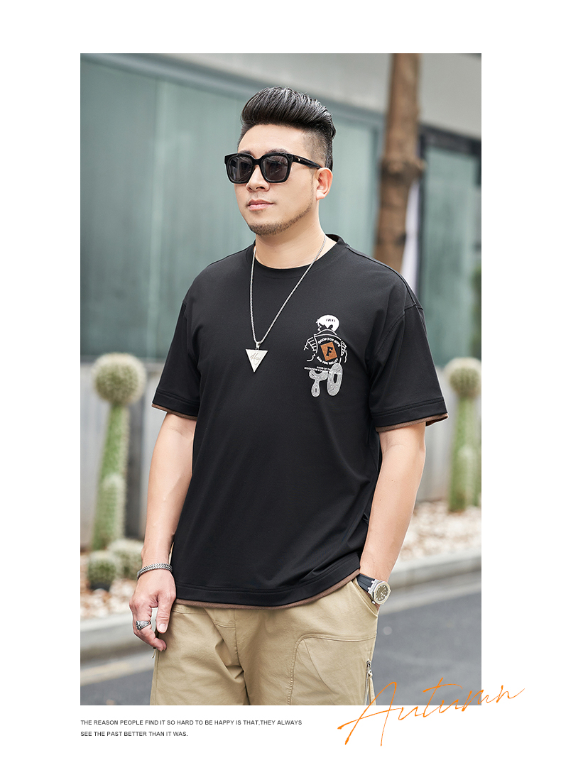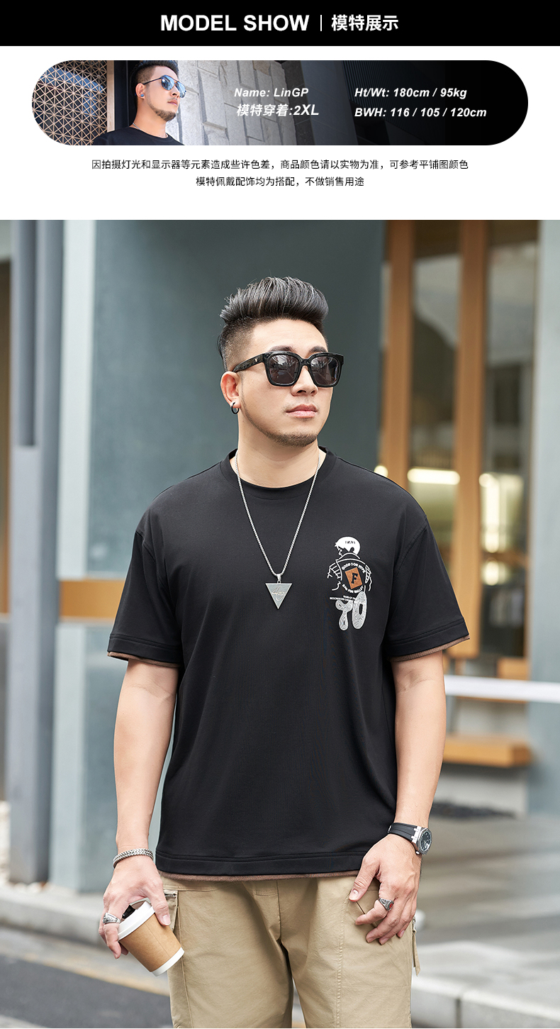 【新款DMH】大依优型大码男装前后印花圆领短袖T恤加肥加大休闲肥佬男上衣夏季半袖胖子潮款