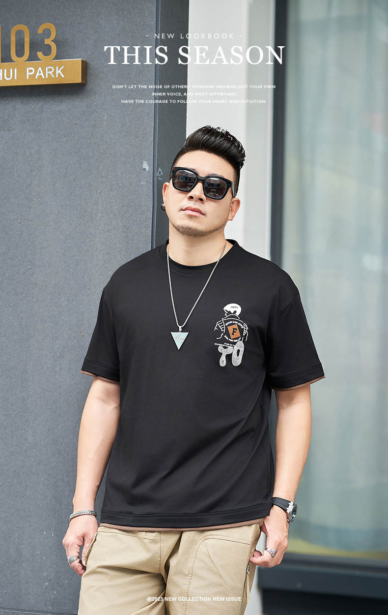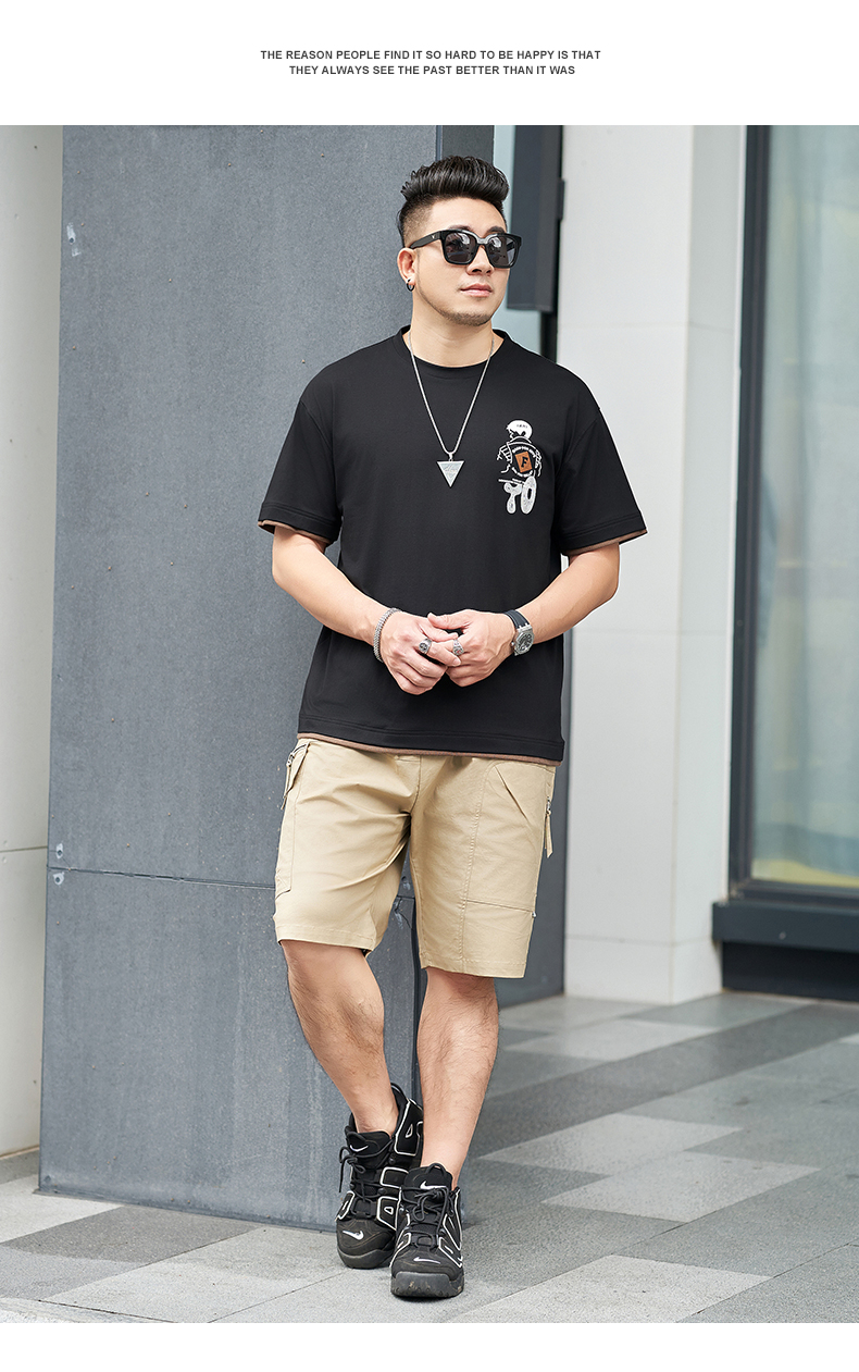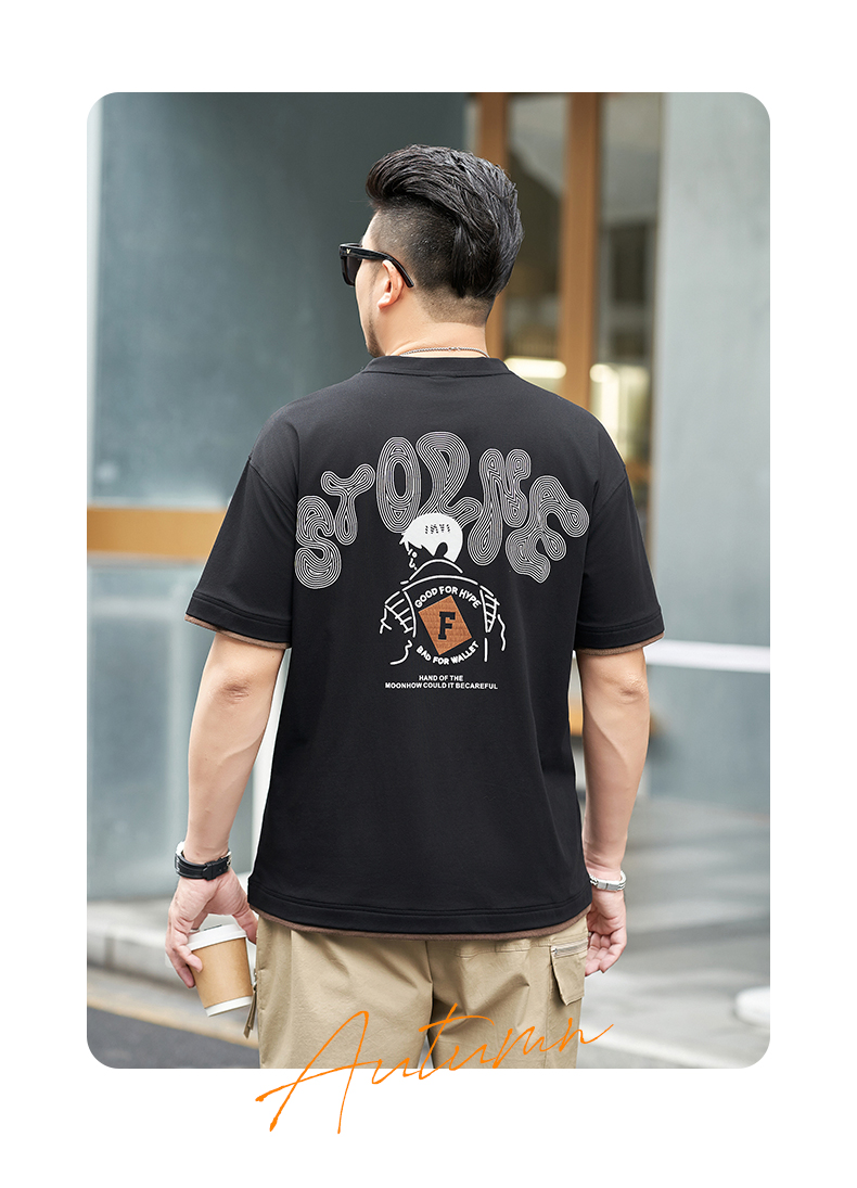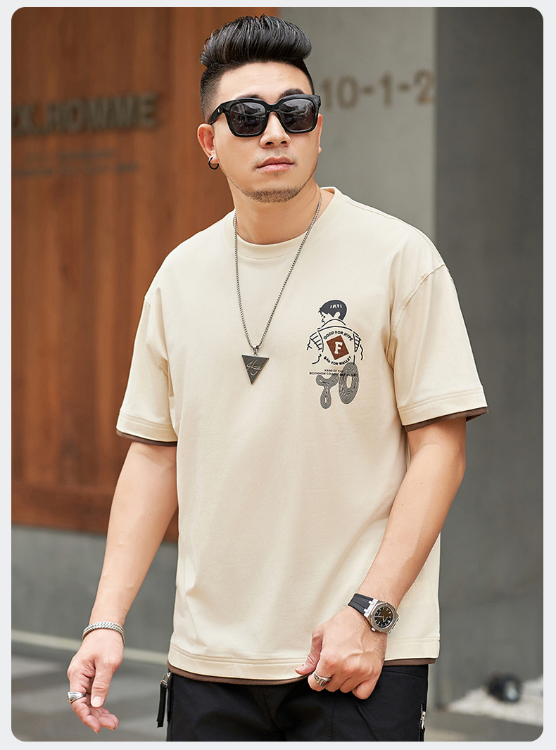 【新款DMH】大依优型大码男装前后印花圆领短袖T恤加肥加大休闲肥佬男上衣夏季半袖胖子潮款
