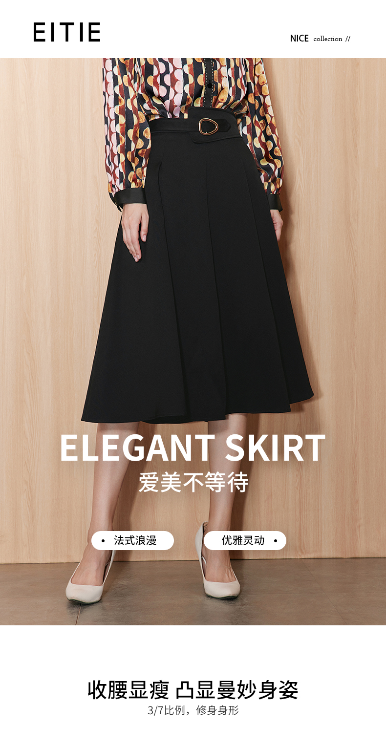 EITIE爱特爱秋季新款气质通勤显瘦百搭伞裙高腰半身裙7106807