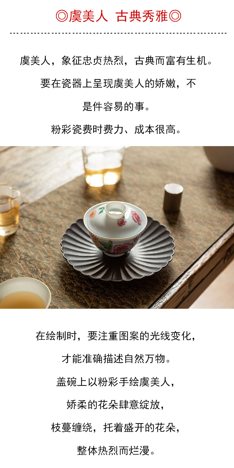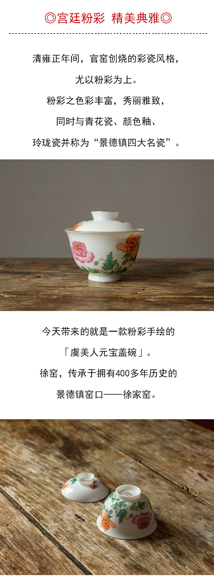 茶香记 虞美人元宝盖碗 徐窑 宫廷粉彩 手绘 古典 陶瓷 泡茶碗