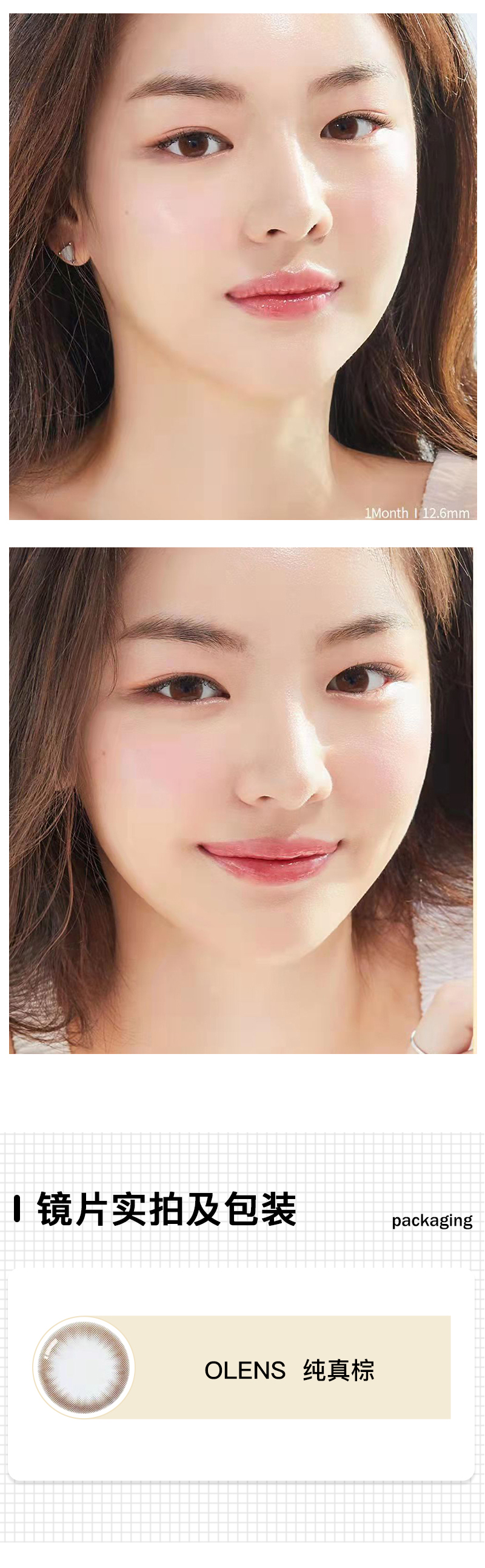 OLENS / 纯真棕 / 2片入 / 月抛美瞳 / 14.2mm / 几乎不扩瞳妈生素颜心机款