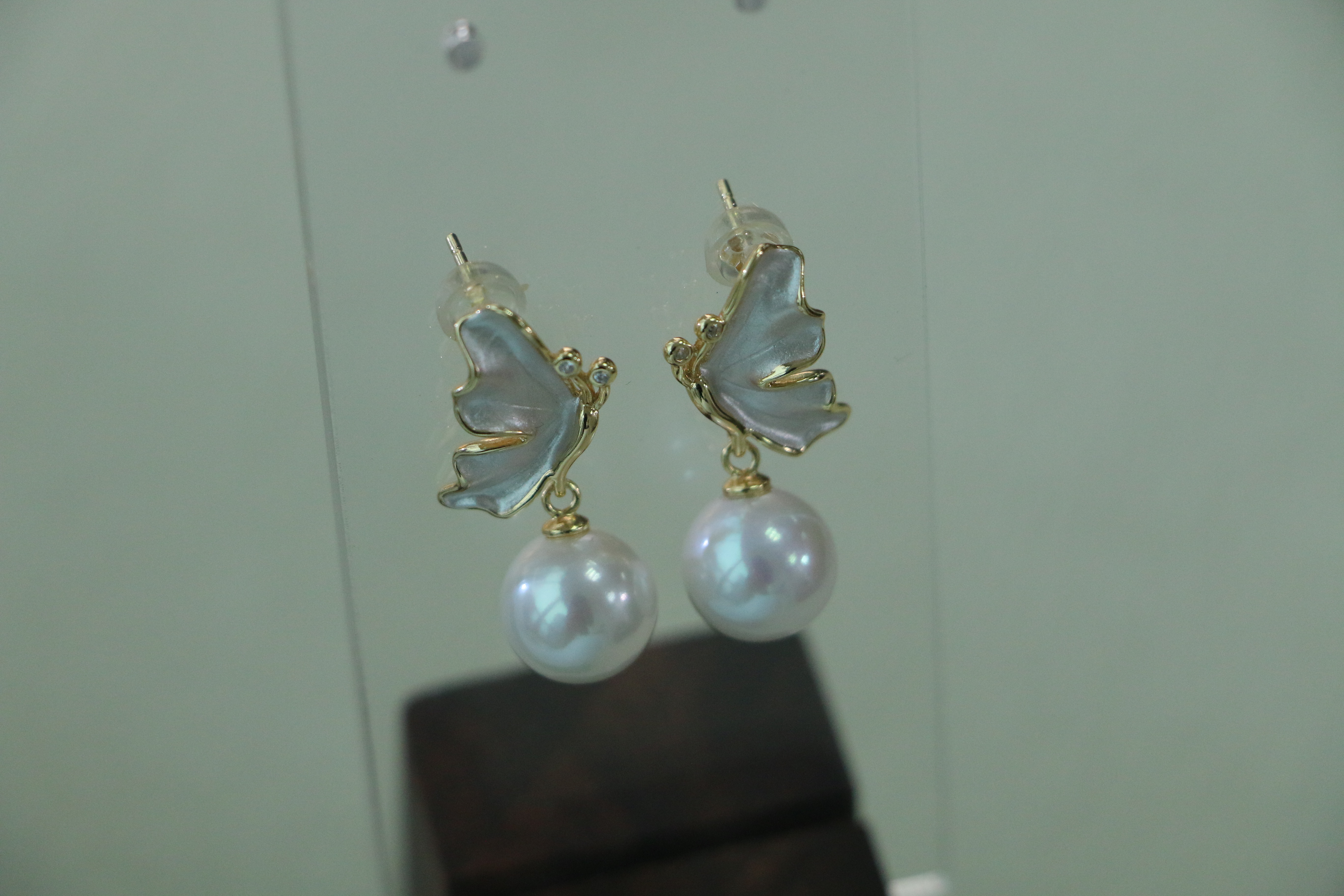 这对蝴蝶耳环的造型设计还蛮妙的。蝴蝶翅膀是带哑光磨砂的,立体感很强。