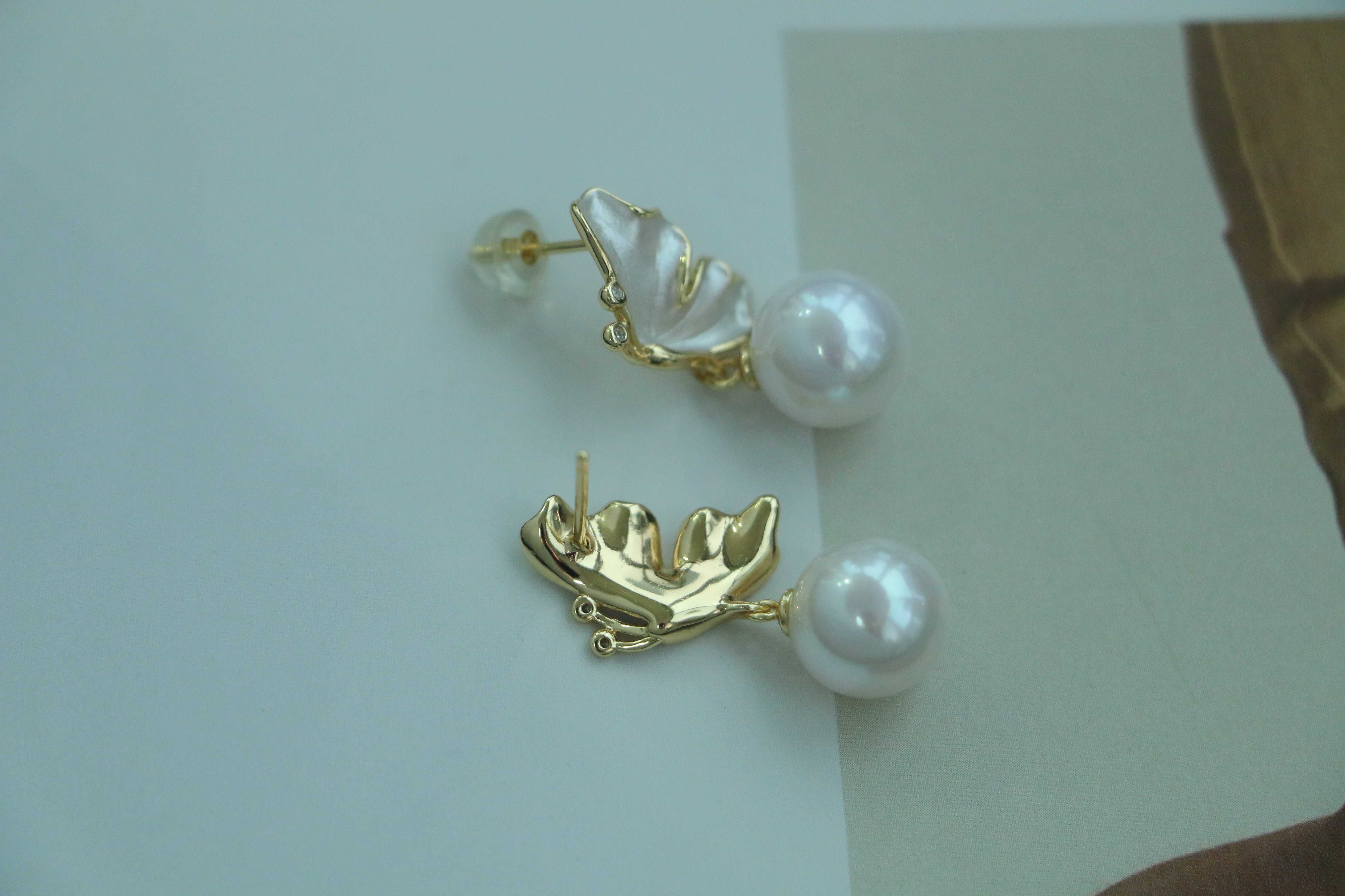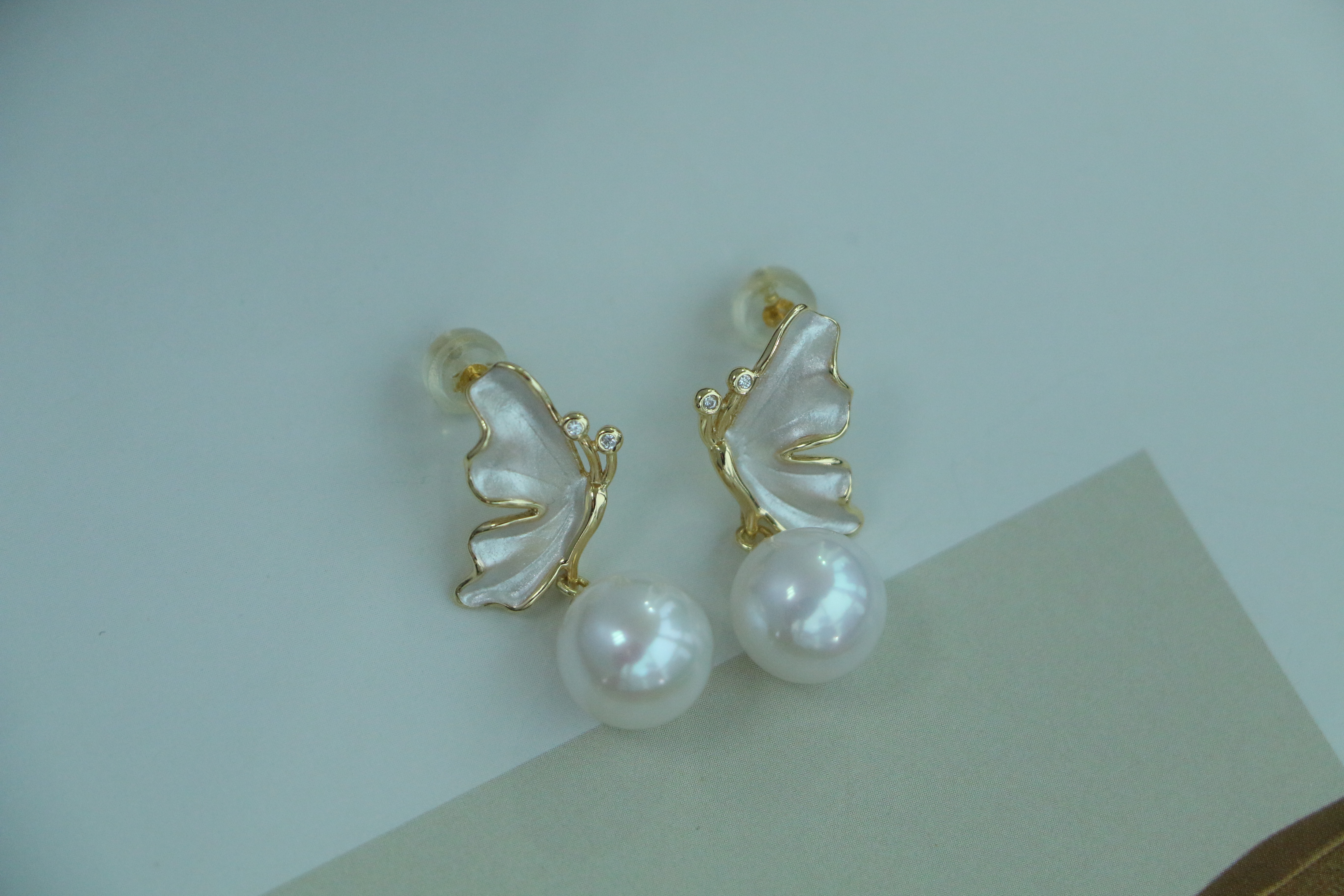 【4月10号左右发货】甄珠贝 蝴蝶耳环 爱迪生10-11mm 正圆无暇强光 纯银配件