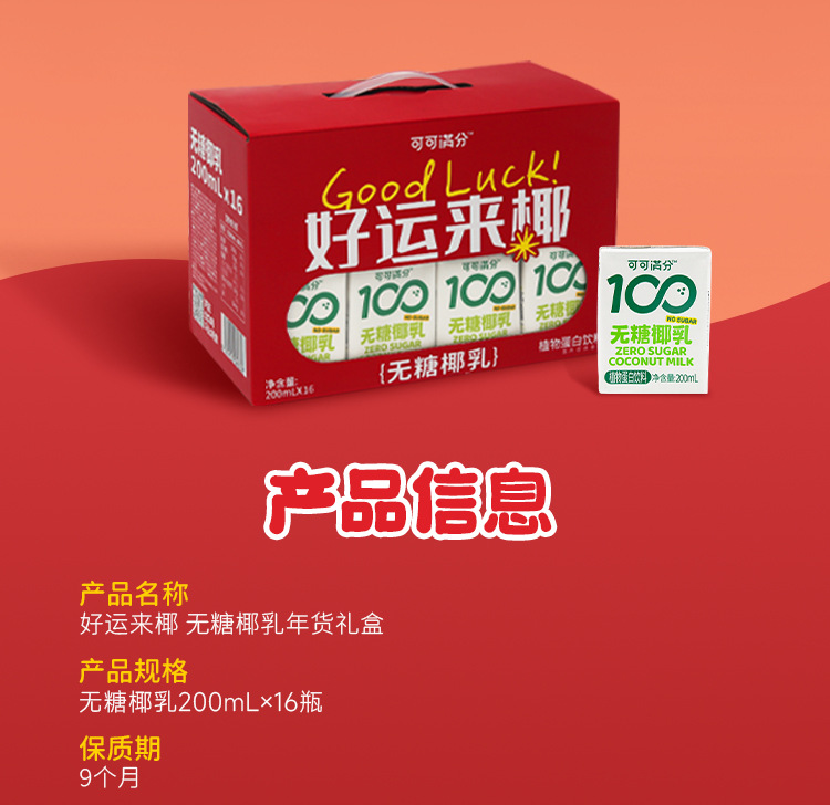 【黄金配比清甜丝滑❗️鸿运当头乐享年味】可可满分无糖椰乳礼盒 200ml*16健康饮品椰奶新年送礼节日礼盒。jc