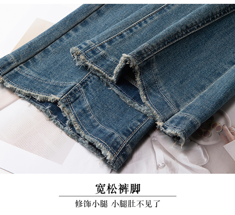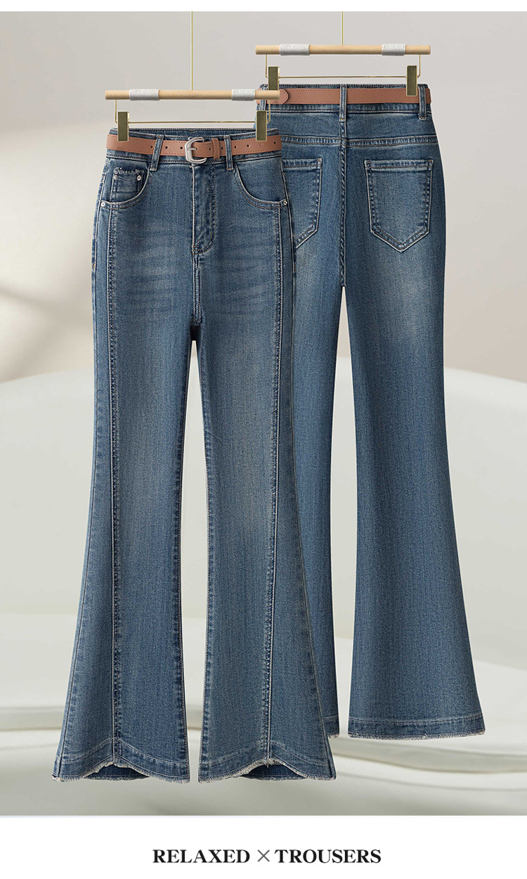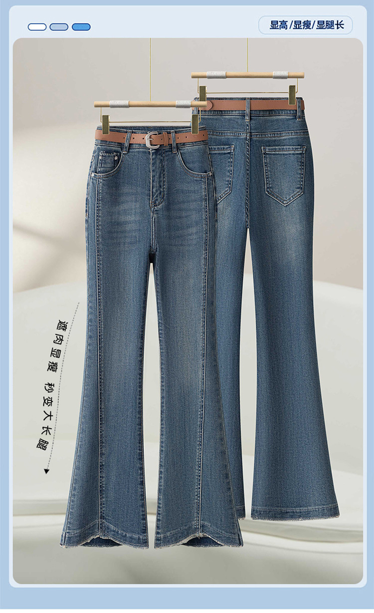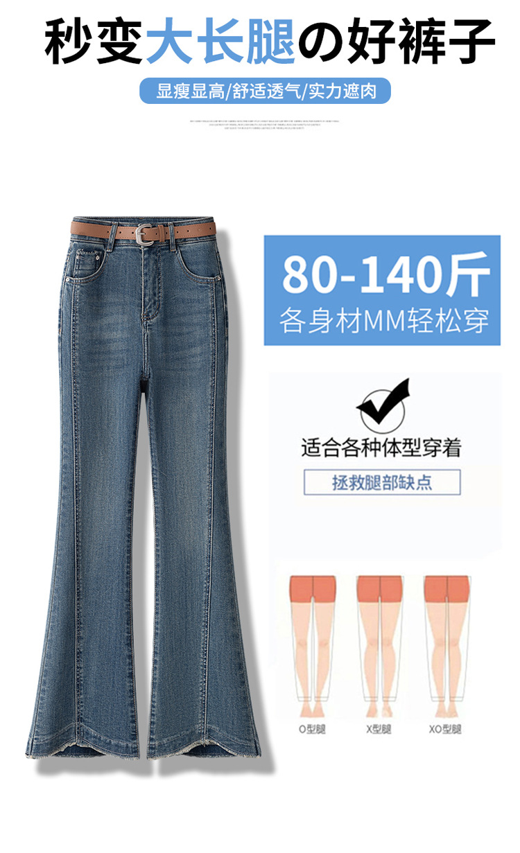 MYX-OZY-2551-L时髦牛仔微喇裤长款修身显瘦休闲喇叭裤春季新款洋气高腰鱼尾裤