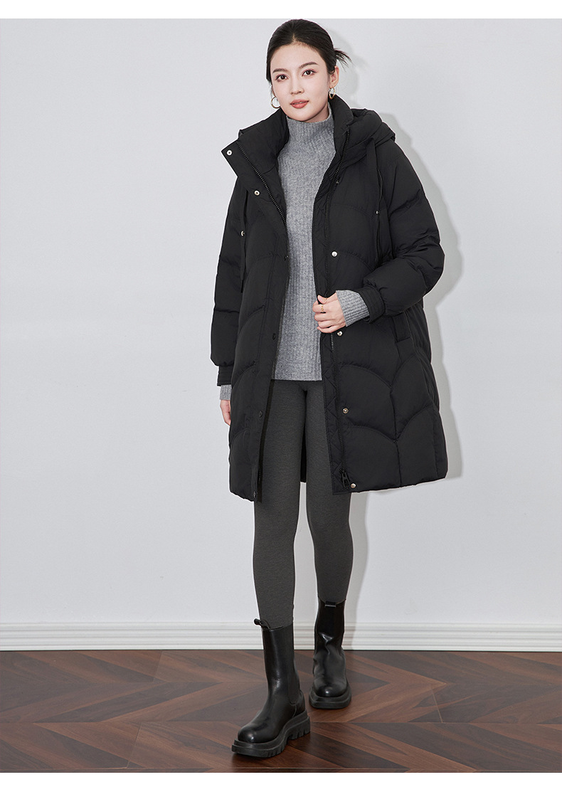 【高货wl】全新升级【铂金会员661/天猫899/差价238】(40002) 洛诗琳肌理感菱格连帽羽绒服鸭绒加厚保暖御寒时尚外套
