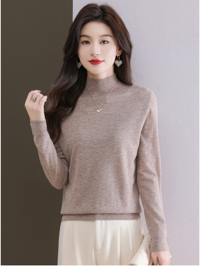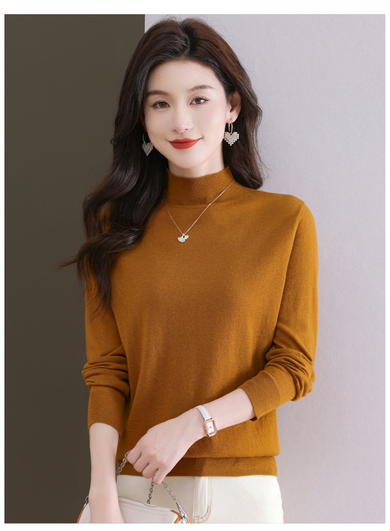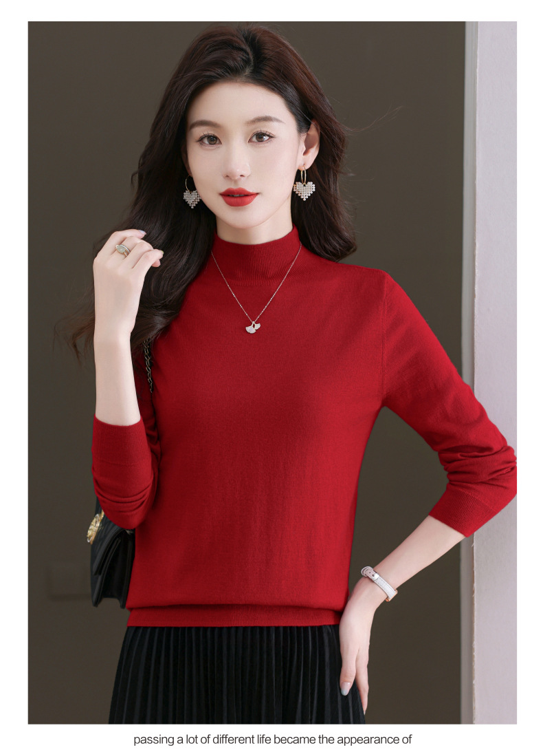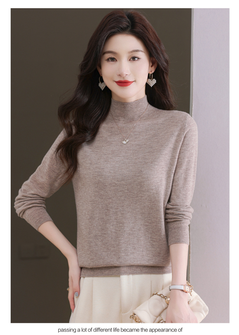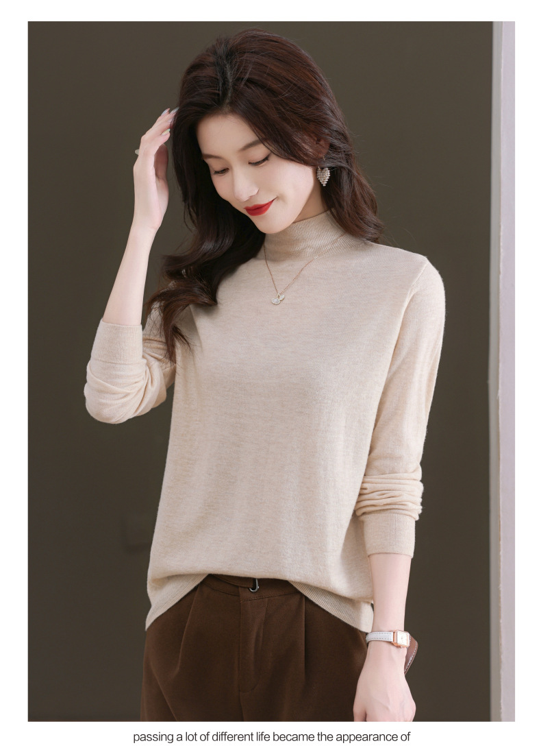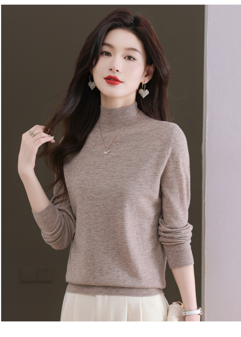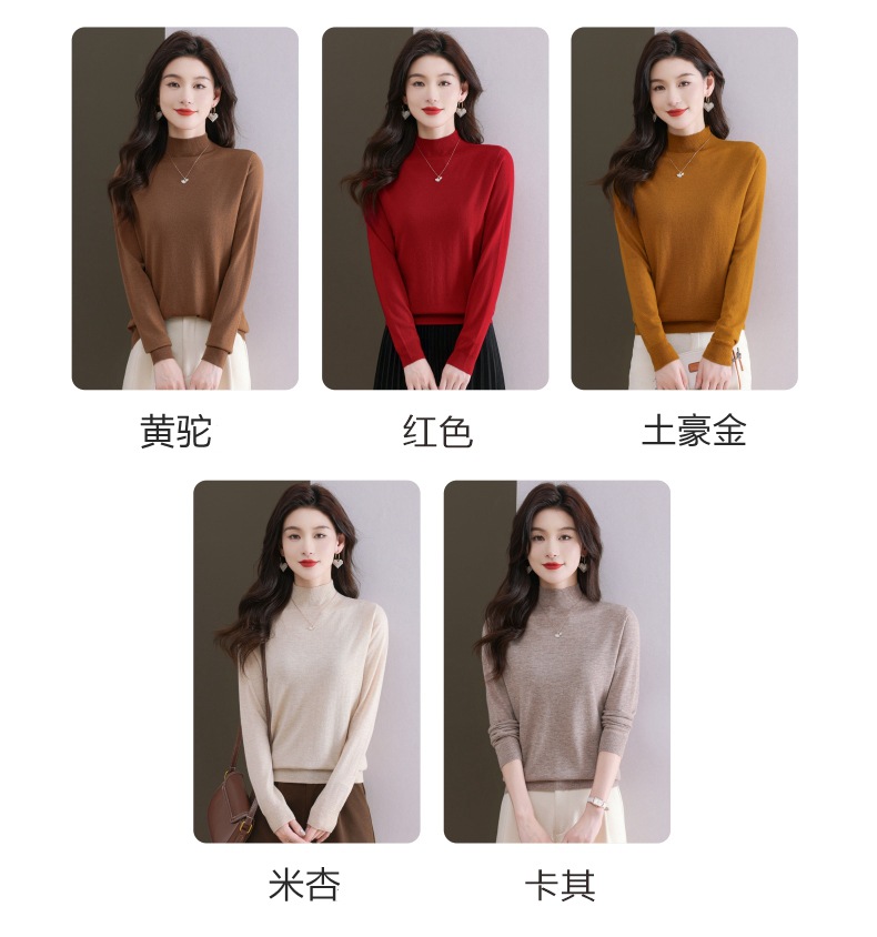 CC-101-806美丽诺精纺羊毛衫女100纯羊毛半高领毛衣修身显瘦短款打底衫