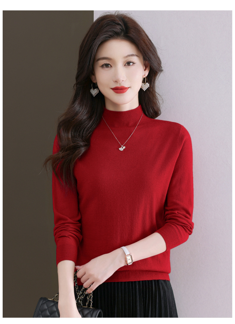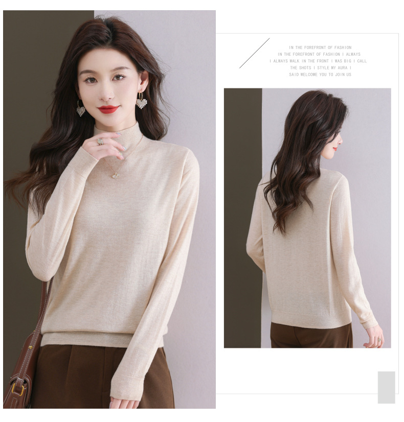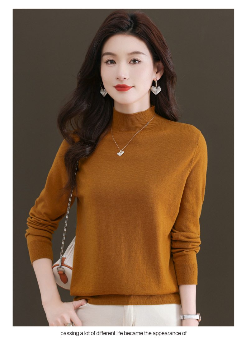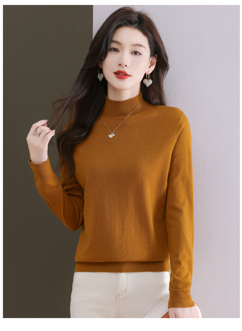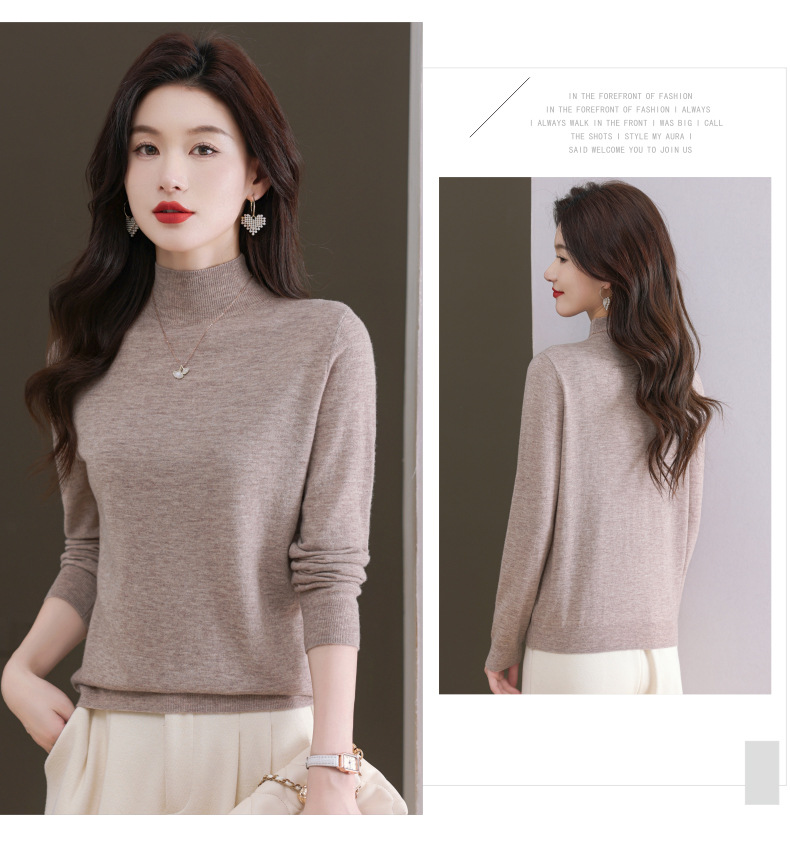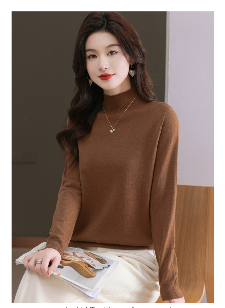 CC-101-806美丽诺精纺羊毛衫女100纯羊毛半高领毛衣修身显瘦短款打底衫