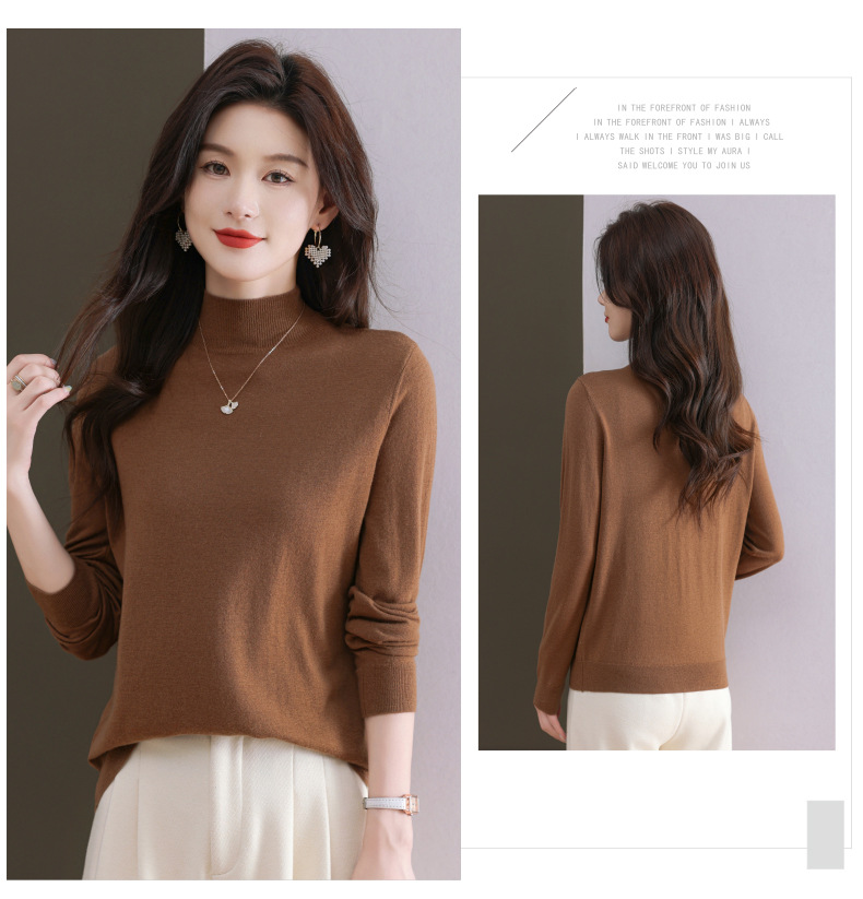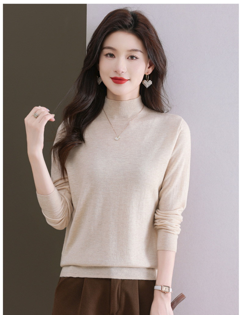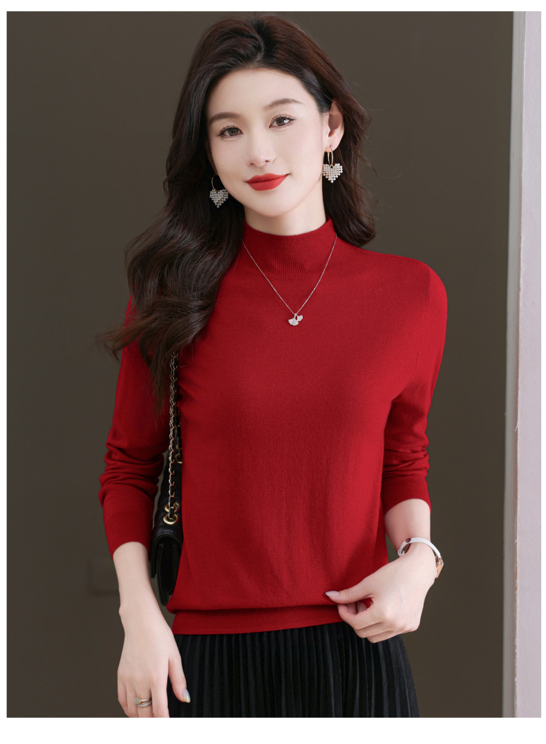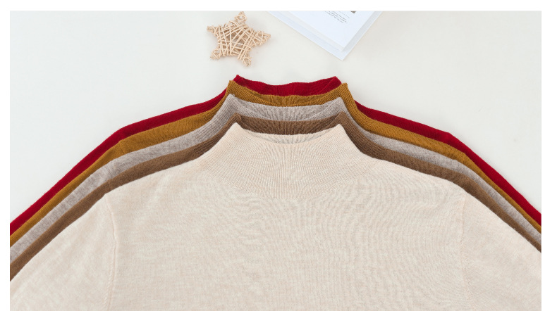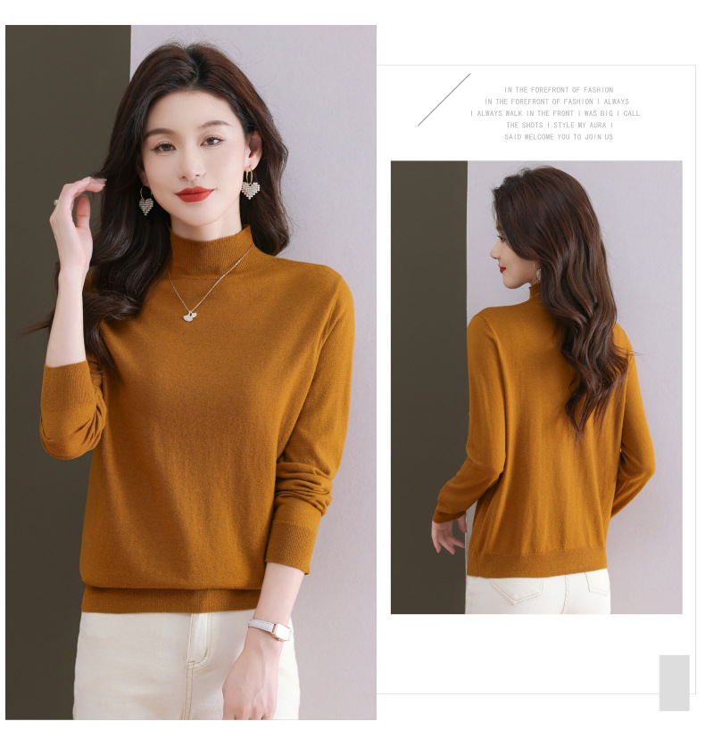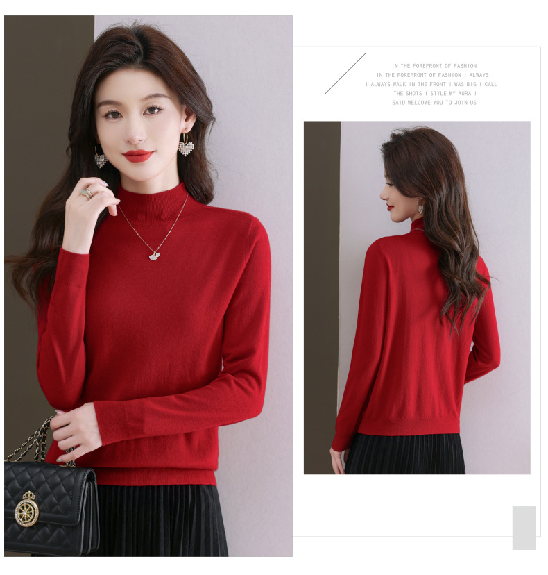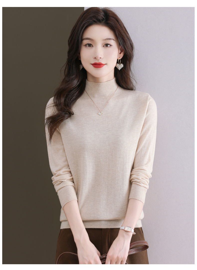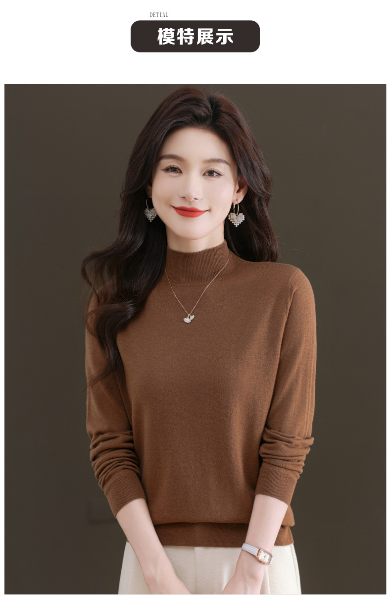 CC-101-806美丽诺精纺羊毛衫女100纯羊毛半高领毛衣修身显瘦短款打底衫