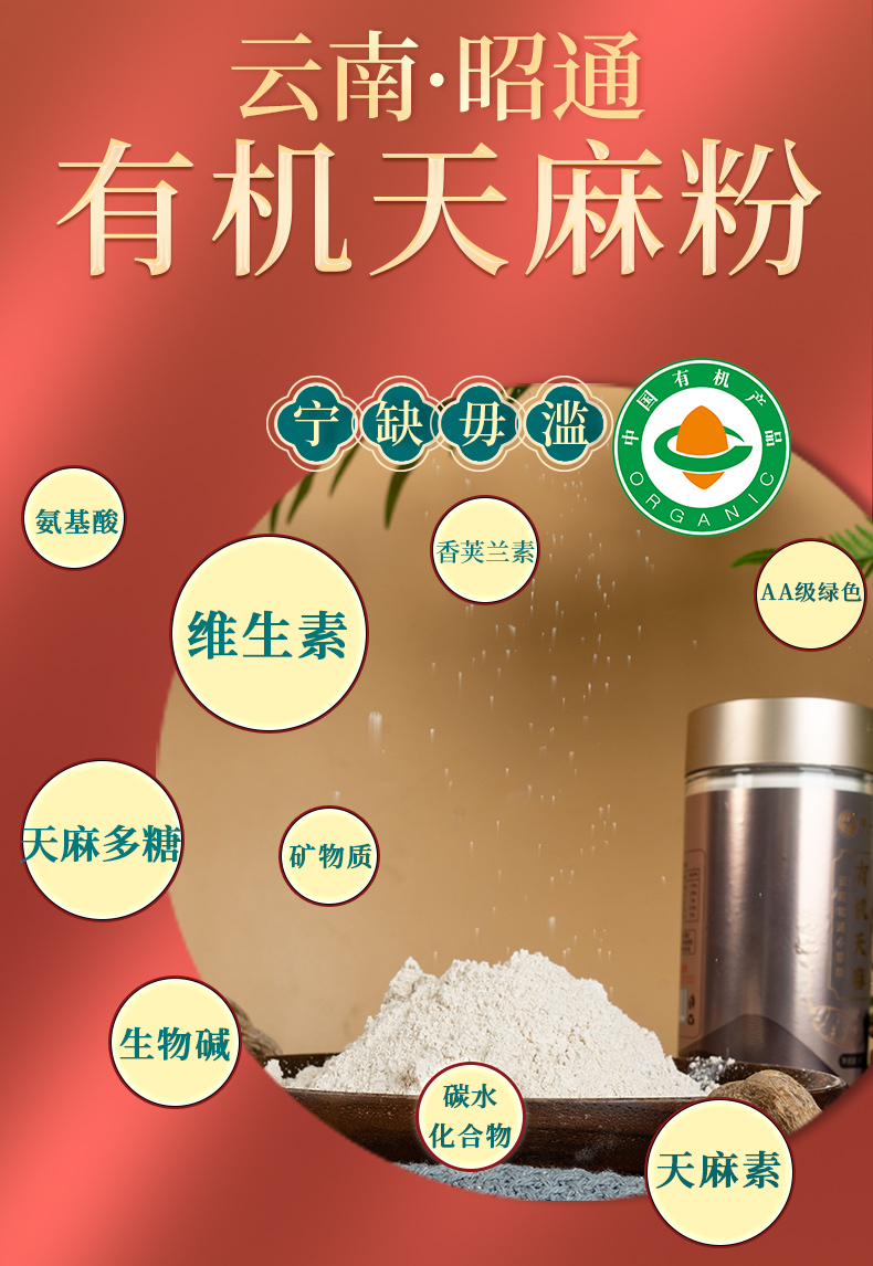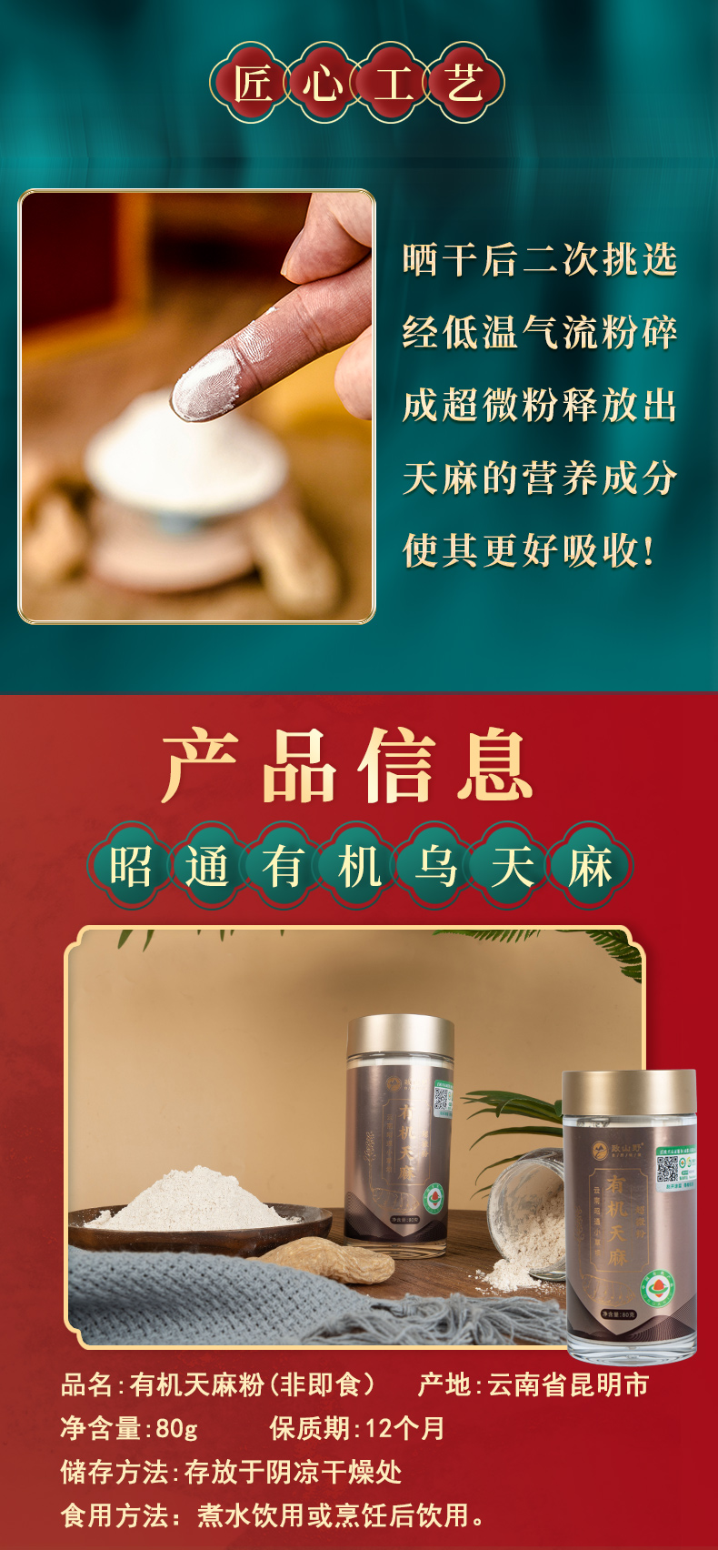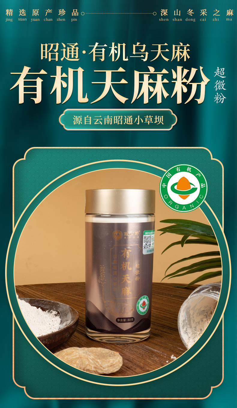 致山野 有机天麻粉 80g/瓶 礼盒装 云南昭通小草坝天麻 超微细