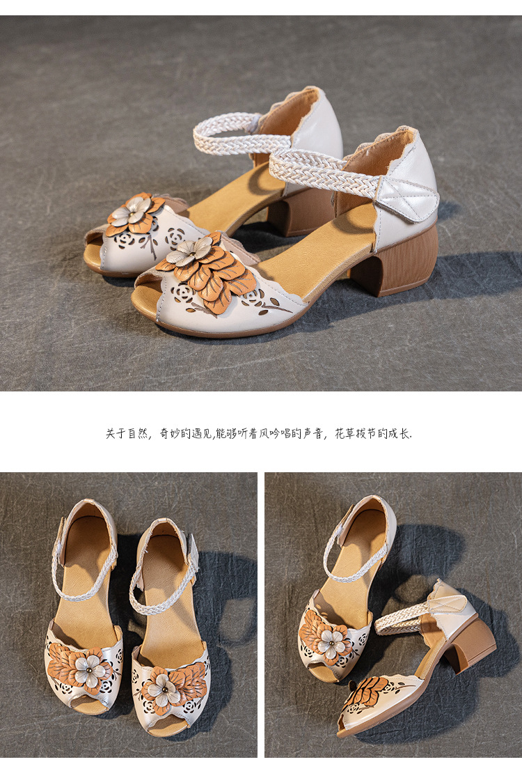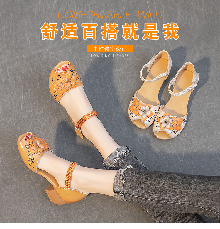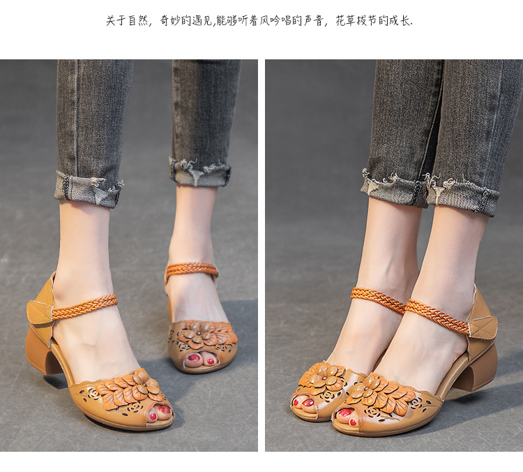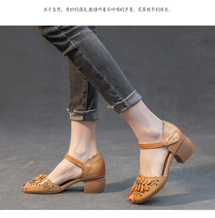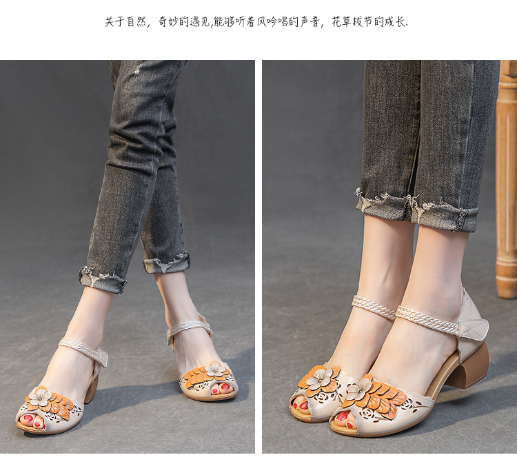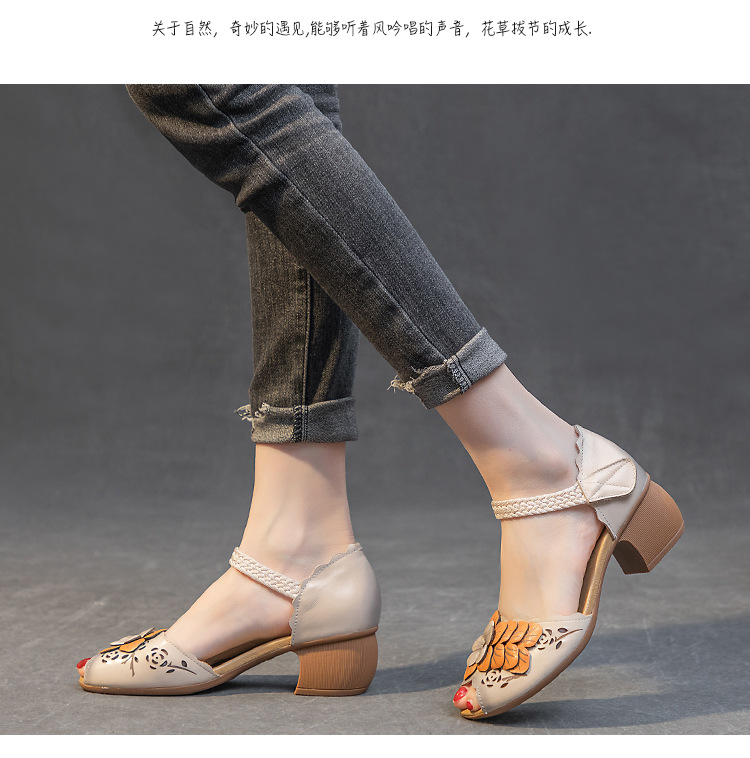 凉鞋女头层牛皮粗跟中跟鱼嘴魔术贴GL39103