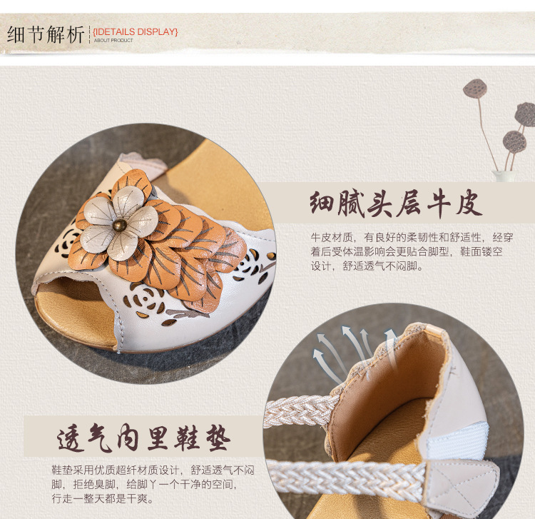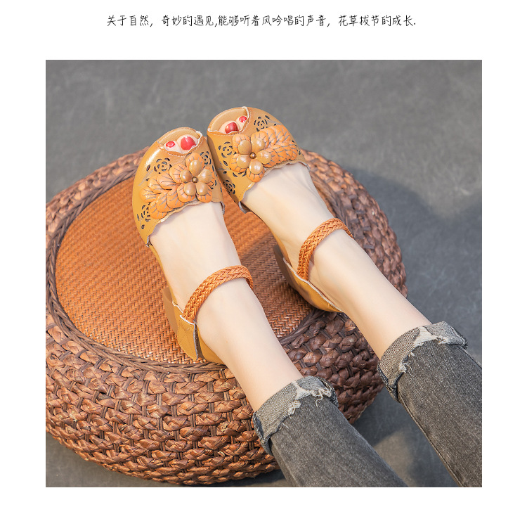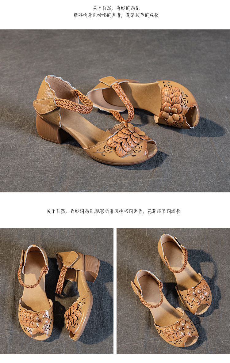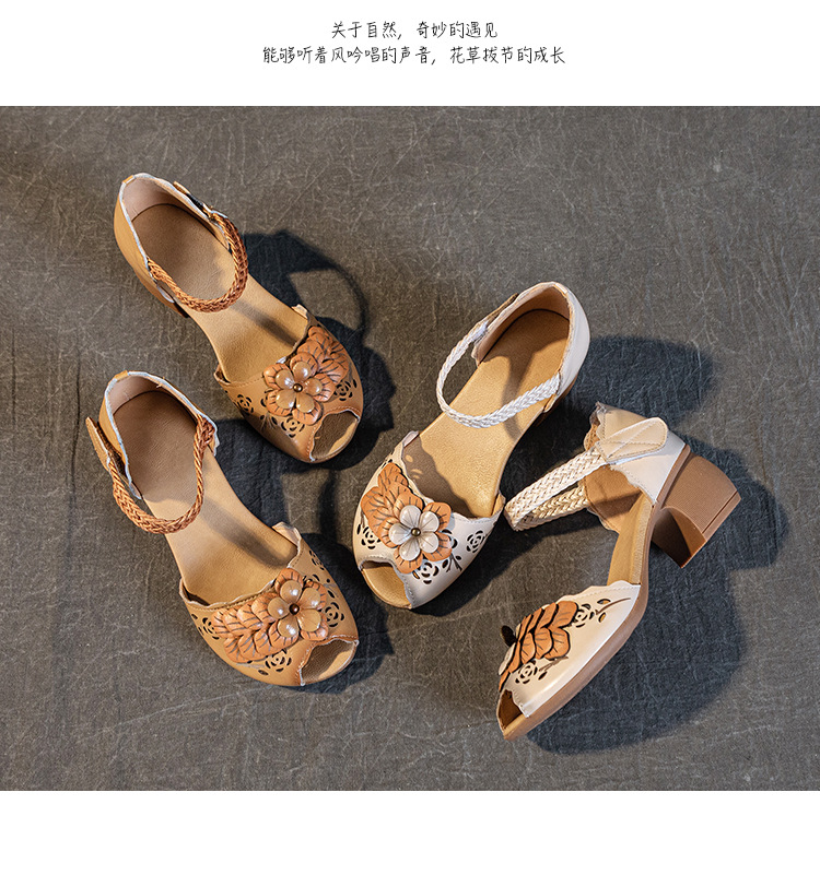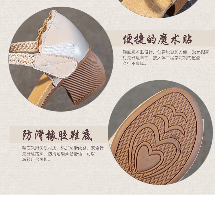 凉鞋女头层牛皮粗跟中跟鱼嘴魔术贴GL39103