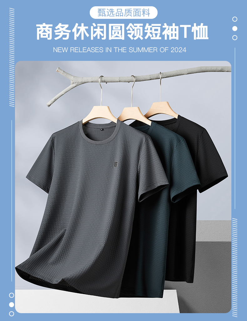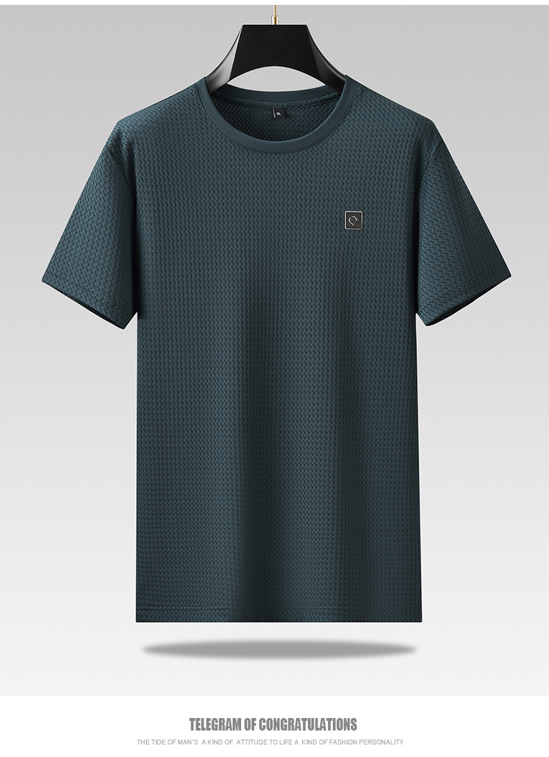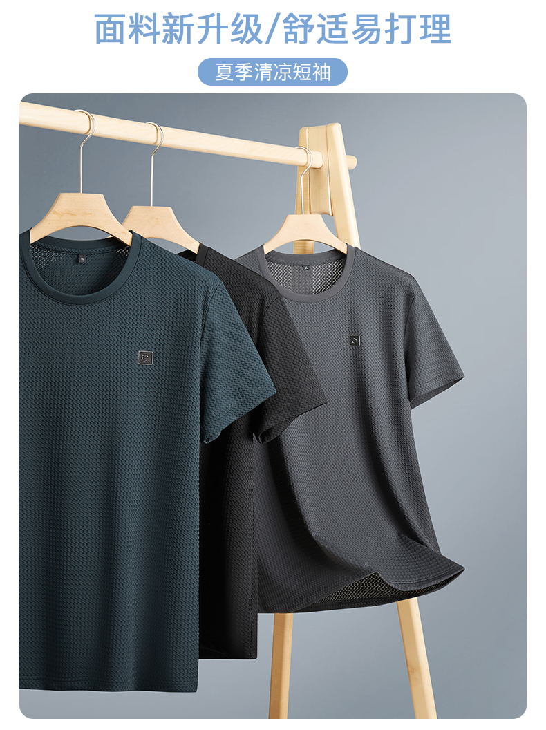 【冰丝高弹】【新款DPF】大依优型大码条纹短袖T恤加肥加大男装大号大码上衣男士休闲半袖夏季