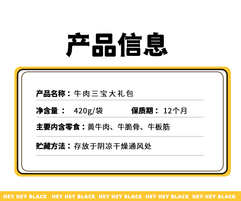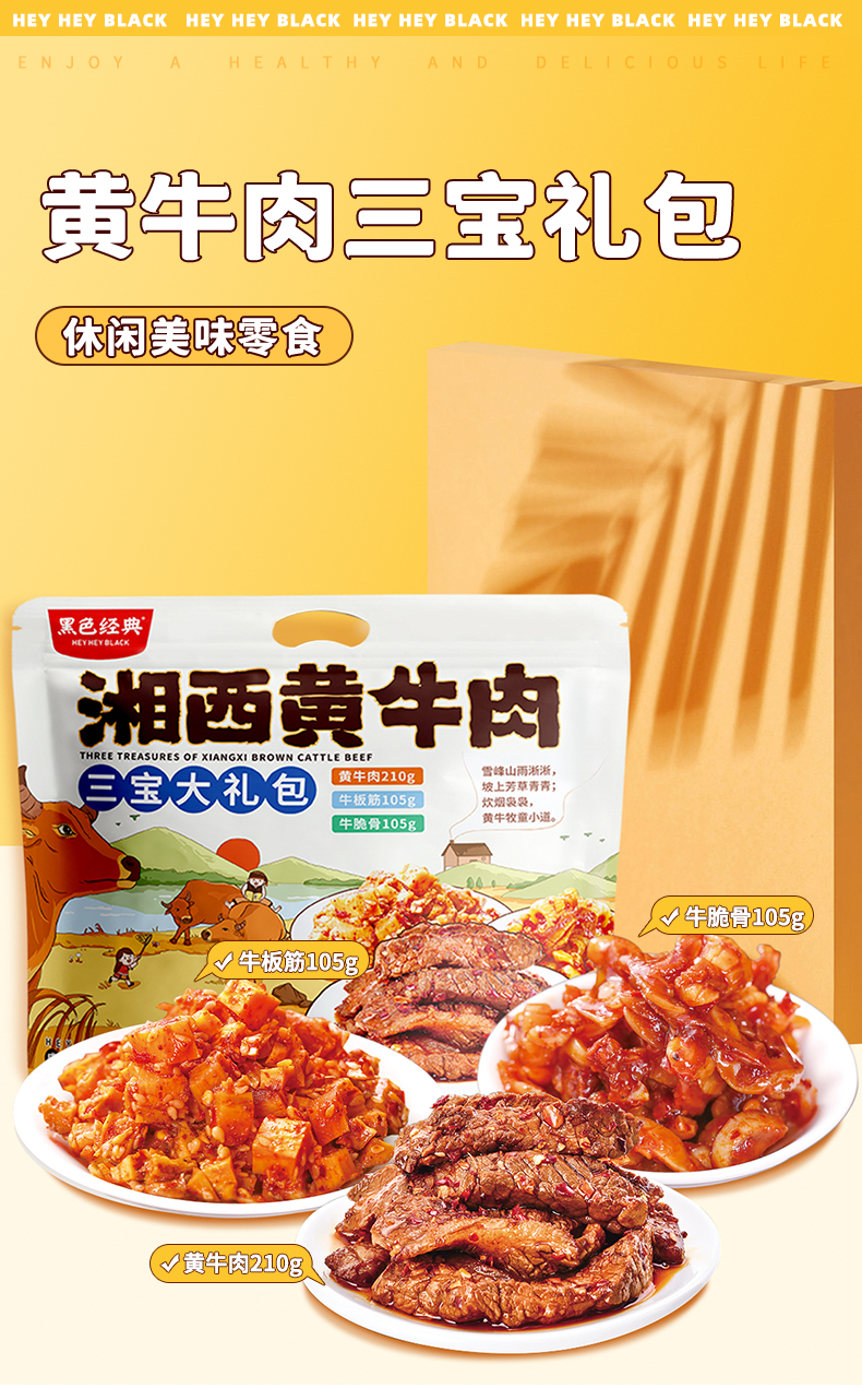【5000积分兑换】黑色经典牛肉三宝大礼包420g/袋 含牛肉+牛板筋+牛脆骨