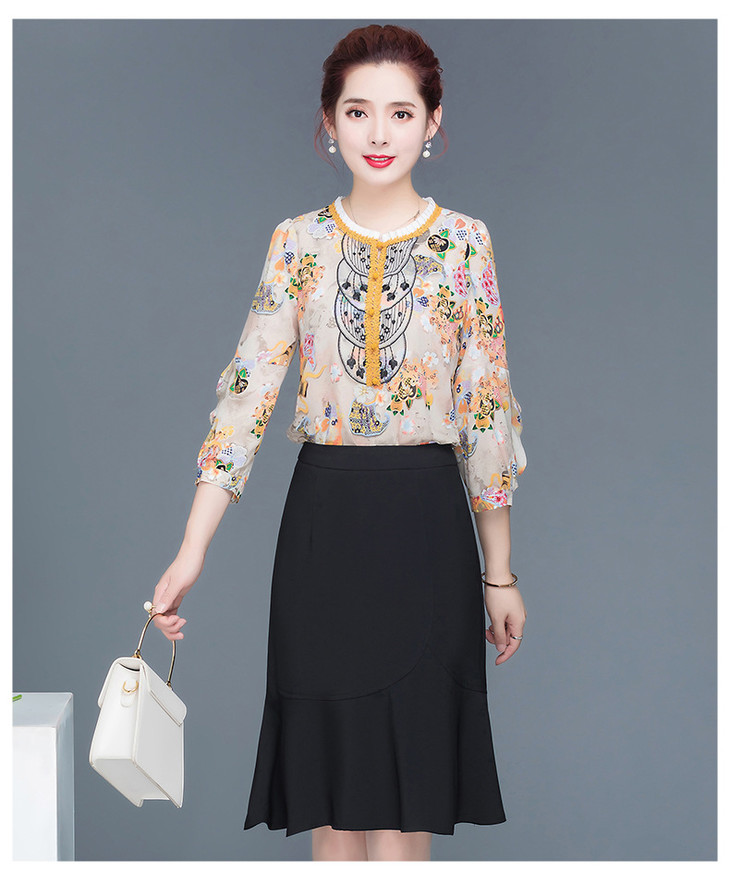 YW-HSY-R2C009T新款印花时尚减龄气质修身显瘦两件套裙