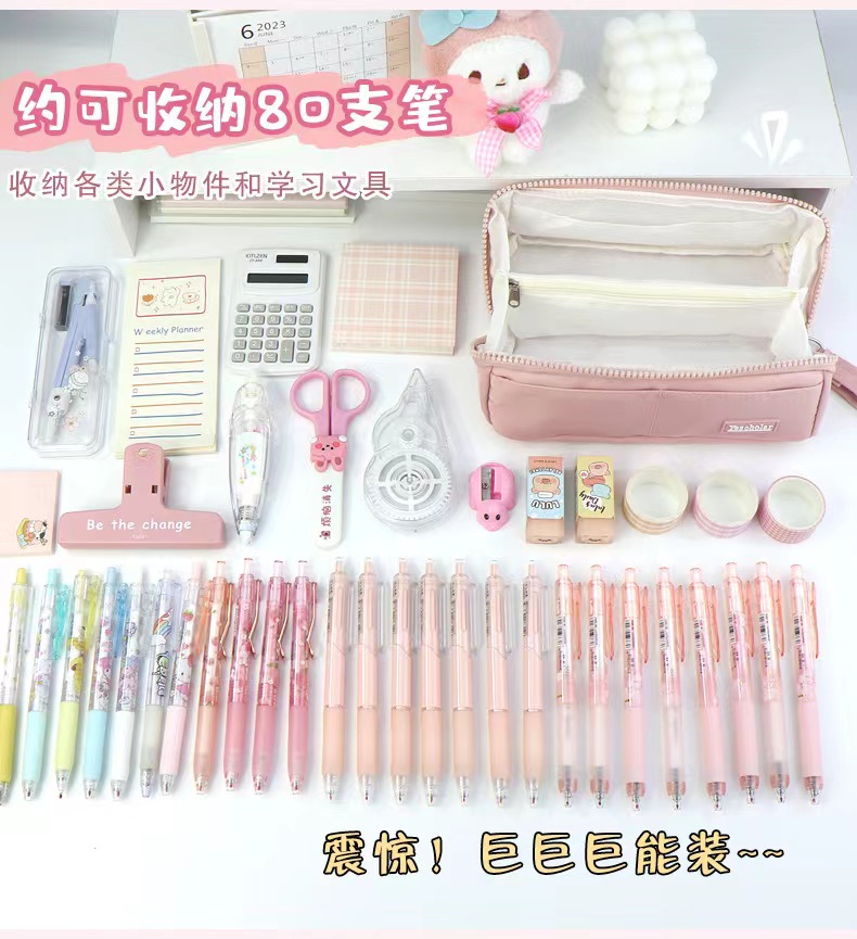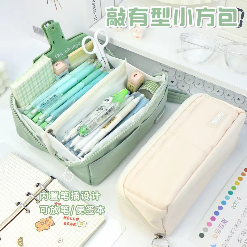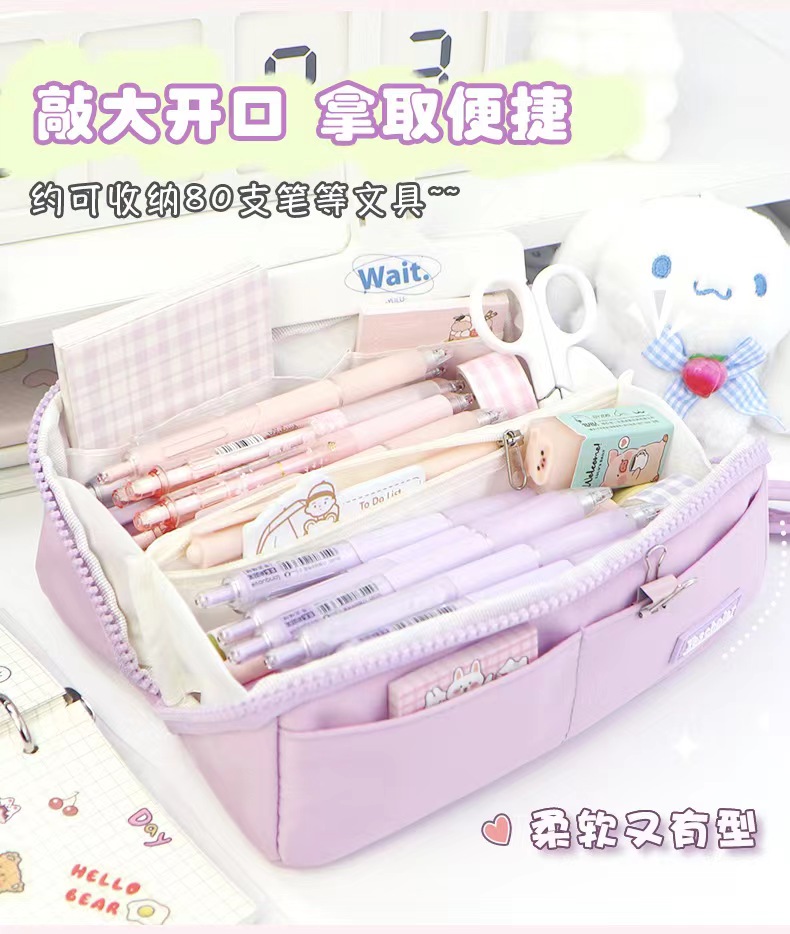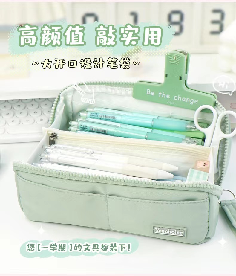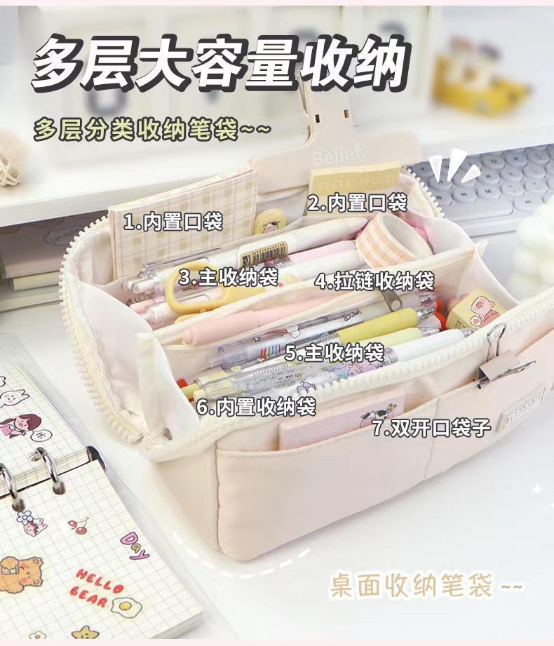 多层大容量高颜值笔袋简约ins风日系分离文具袋大开口学生铅笔盒