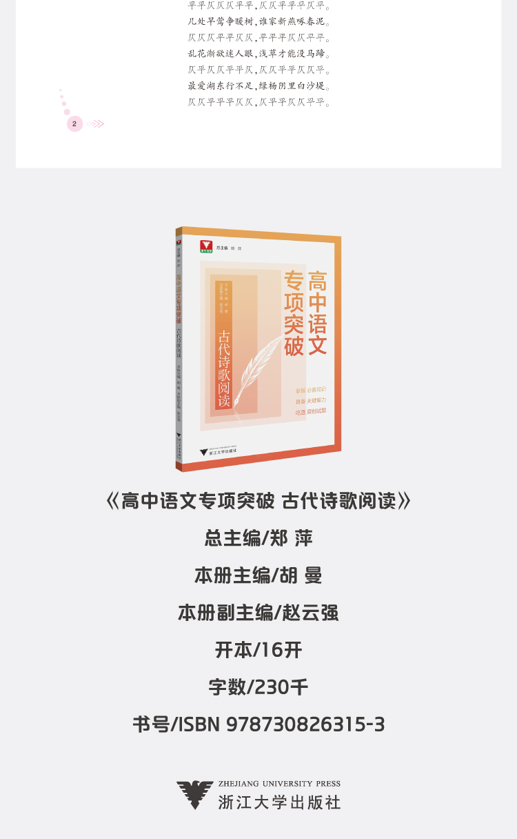 高中语文专项突破 古代诗歌阅读/浙大优学/具备关键能力/吃透原创试题/总主编 郑萍/本册主编 胡曼/本册副主编 赵云强/浙江大学出版社