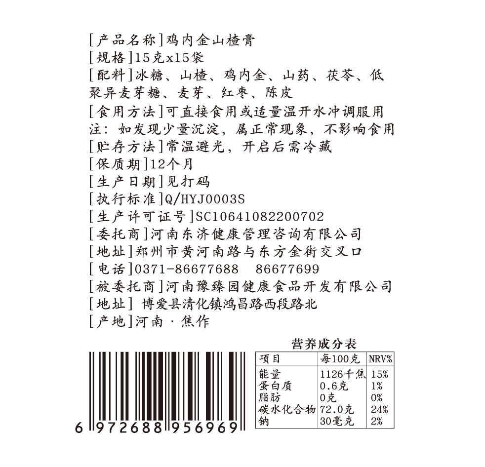 东济堂鸡内金山楂膏 酸甜可口 孩子爱喝 日常陪伴 15支/盒