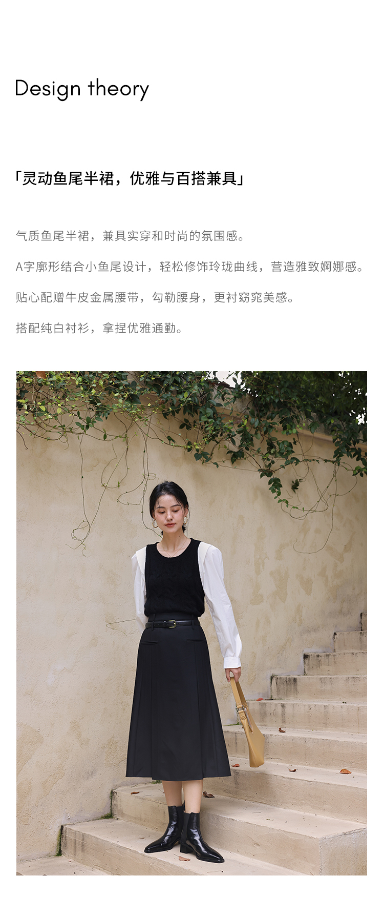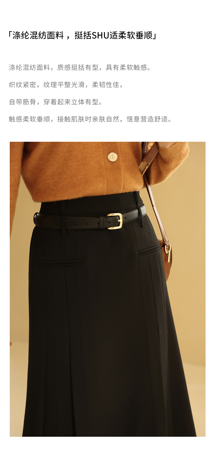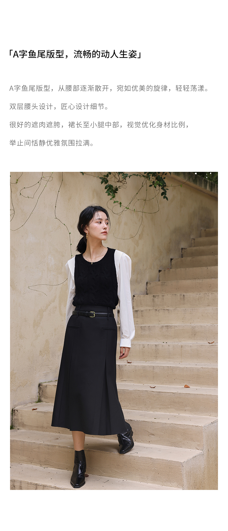 HeyDress法式黑色半身裙女秋季高腰显瘦浪漫鱼尾设计感A字半裙子