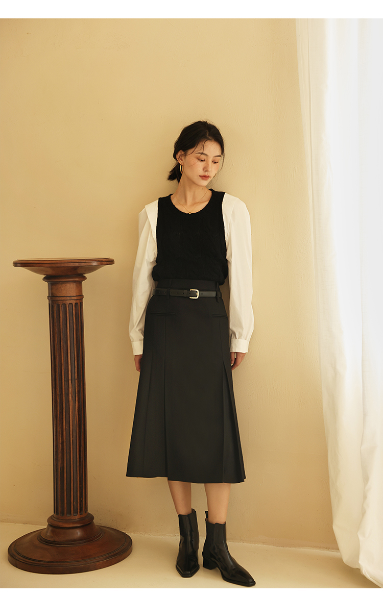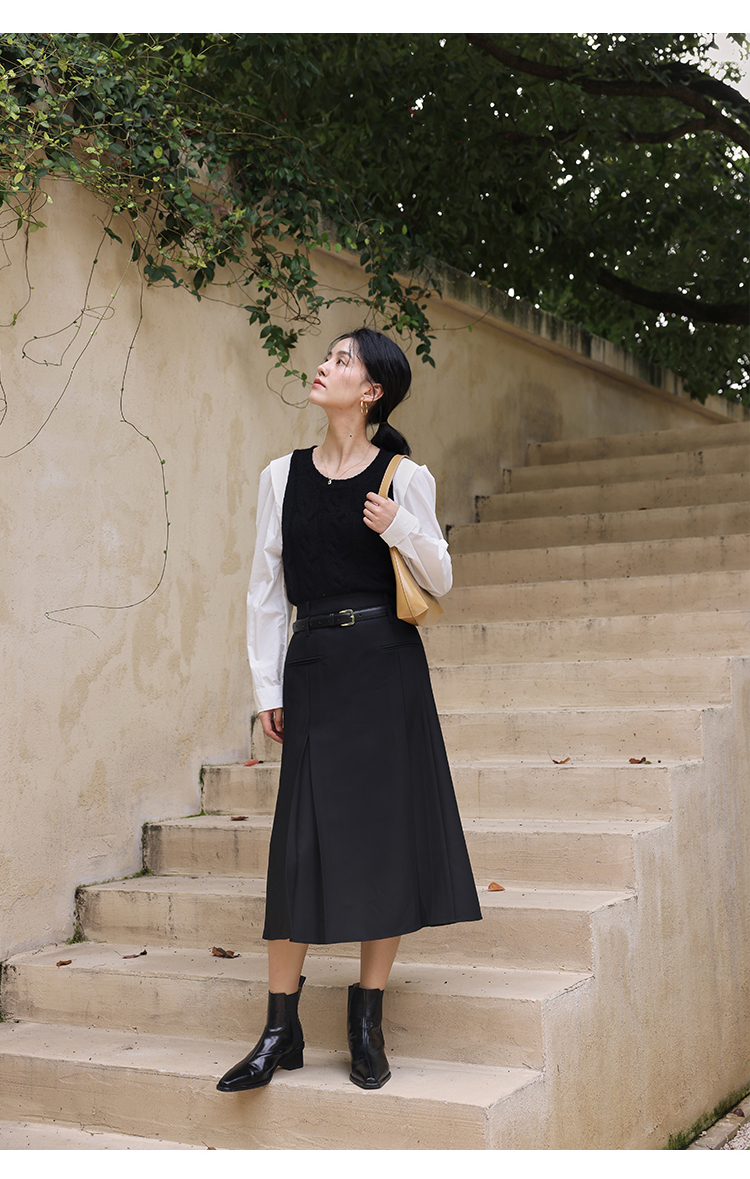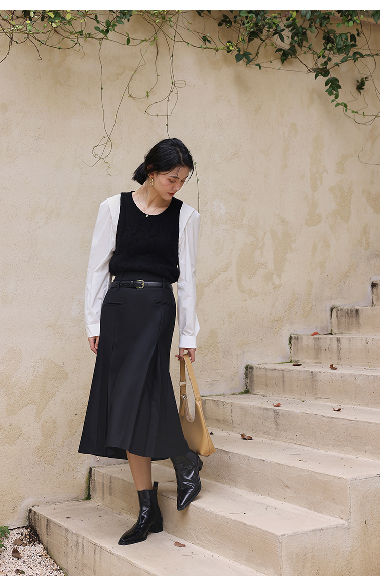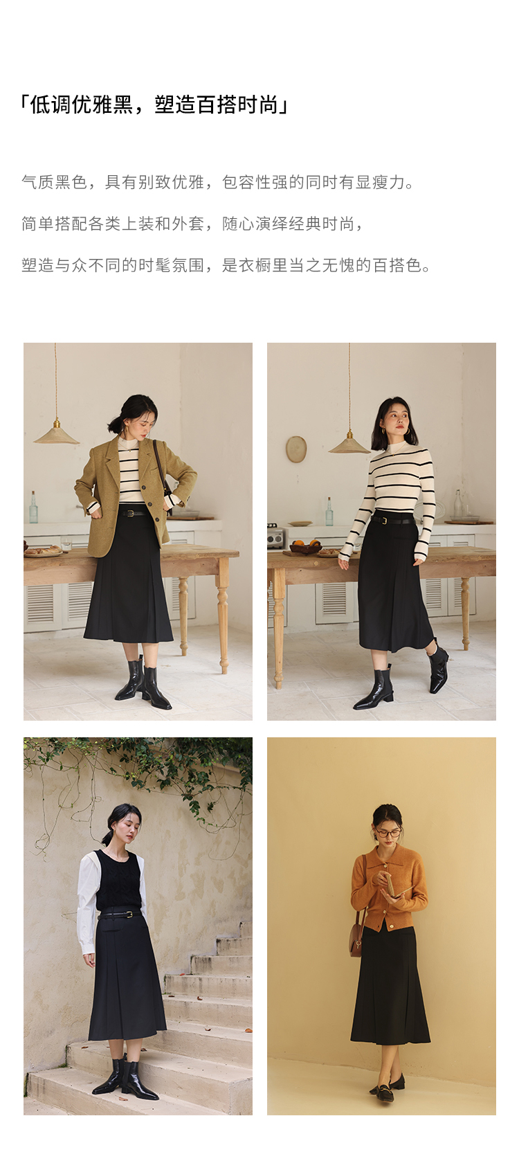 HeyDress法式黑色半身裙女秋季高腰显瘦浪漫鱼尾设计感A字半裙子