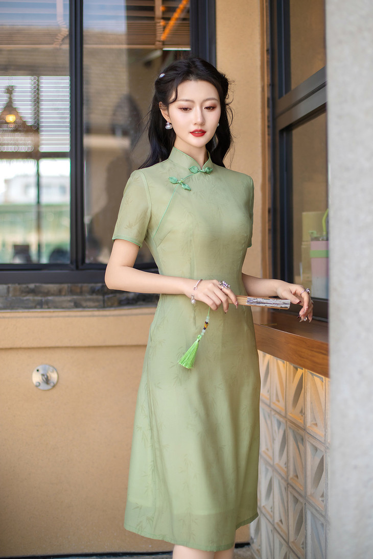 ZAYS年轻款小清新旗袍2024夏季改良A版中长短袖少女立领时尚女装旗袍