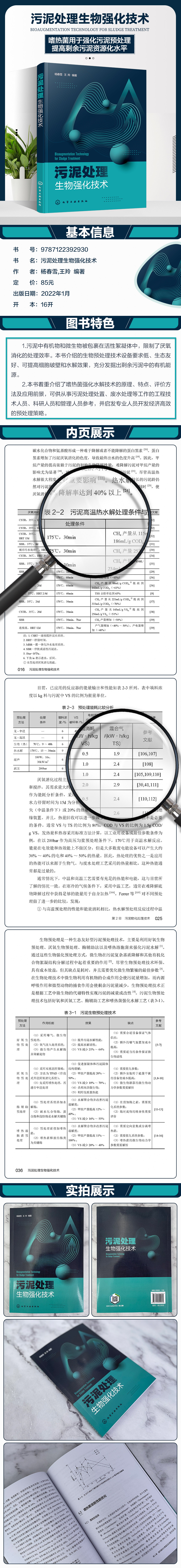本书主要根据污泥预处理性质将各种方法分成物理/机械、化学、生物以及联合处理几大类,分别介绍了污泥预处理方法的特点、研究进展,着重介绍了嗜热菌强化水解技术的原理、特点、评价方法及应用前景。本书共分为7章。第1章主要介绍了目前污泥处理处置现状和相关的技术难点。第2章和第3章分别详细介绍了污泥物化处理技术和生物强化技术的原理与研究进展。第4章着重介绍了嗜热菌的生理生化特征及其溶胞特性,并分离和鉴定了三种嗜热溶胞菌。第5章介绍了嗜热菌强化污泥细胞溶胞过程及对后续发酵产酸过程的影响,揭示了嗜热菌预处理对污泥微生物群落演替的影响,并分析了嗜热菌主要的功能基因表达情况。第6章介绍了一些物化手段联合嗜热菌预处理剩余污泥,着重考察了其对污泥水解酸化过程的影响,并对其主要功能群落进行解析。第7章介绍了基于嗜热溶胞菌的预处理技术用于强化污泥水解产酸过程的前景与展望。本书可供从事污泥处理处置、废水处理等工作的工程技术人员、科研人员及管理人员参考,也可供高等学校环境科学与工程、市政工程及相关专业师生参阅。