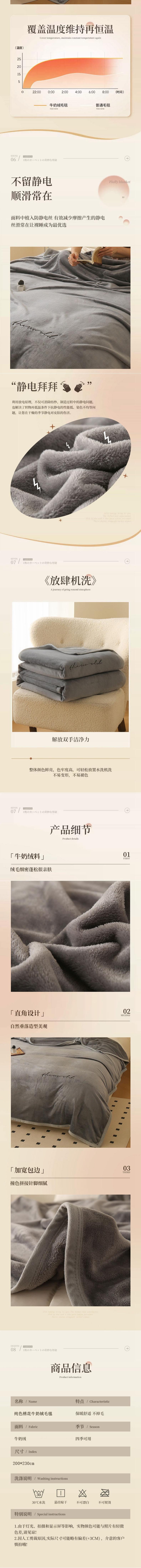 俞兆林 纯色绣花牛奶绒毛毯2米深灰 YZL-24098