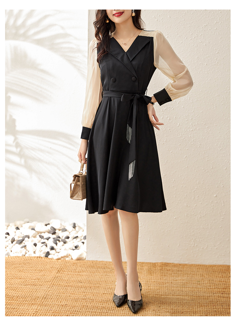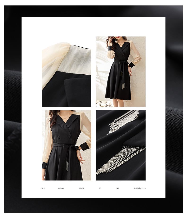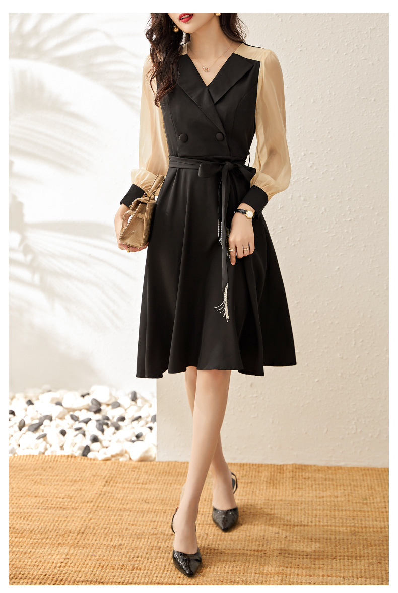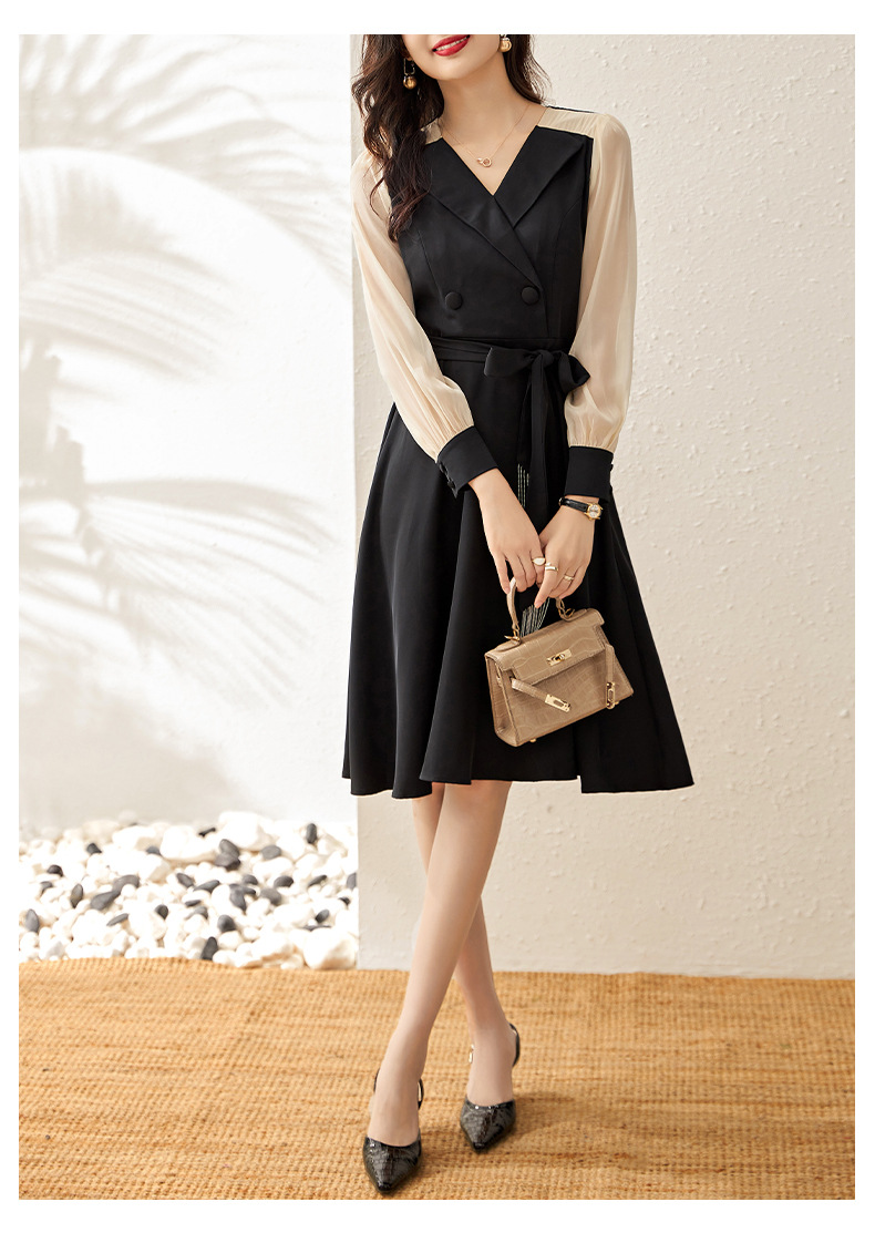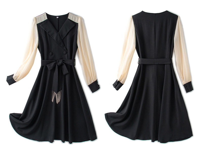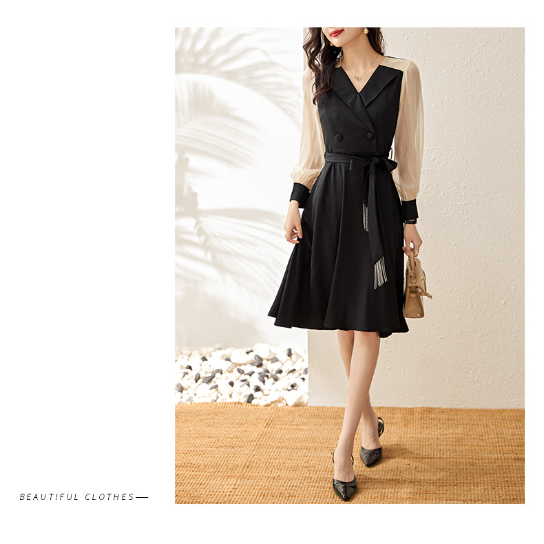 气质,赫本风通勤撞色拼接流苏大摆显瘦西装连衣裙WLZD-2219306