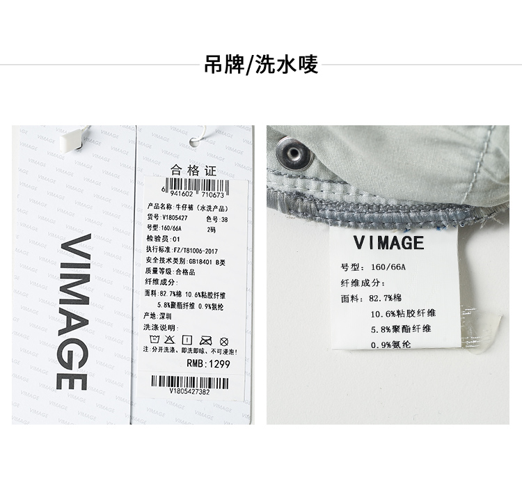 VIMAGE纬漫纪秋季新款时尚通勤显瘦高腰百搭牛仔裤V1805427